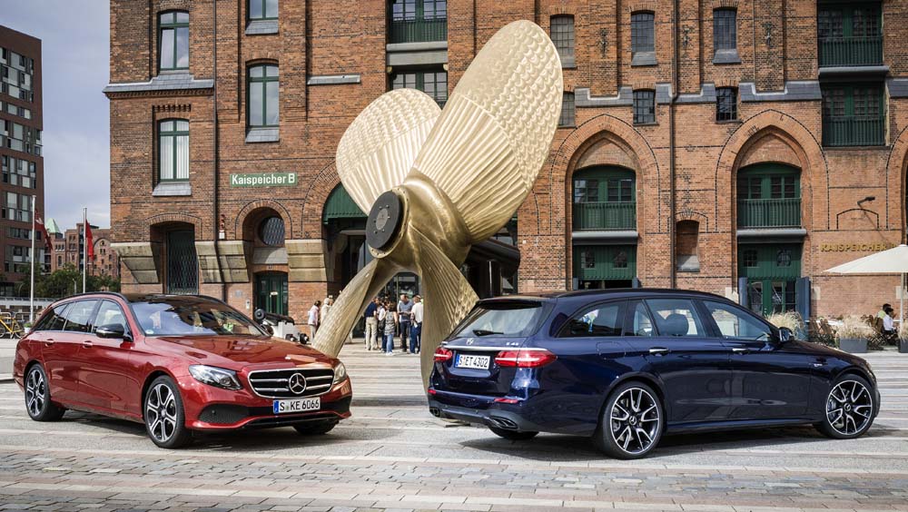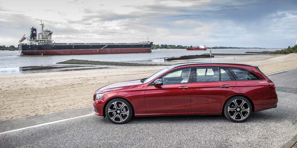Mercedes-Benz E-Klasse T Modell, Press Test Drive Hamburg 2016, E 220d, designo hyazinthrot metallic, designo Leder Nappa schwarz/titangrau pearlAIR BODY CONTROL, AVANTGARDE, E 220 d, Kraftstoffverbrauch kombiniert: 4,2 l/100 km, CO2-Emissionen kombiniert: 109 g/km, E 220d,designo hyacinth red metallic, designo nappa leather black/titanium grey pearl, AIR BODY CONTROL, AVANTGARDE, Fuel consumption combined: 4.2 l/100 km, CO2 emissions, combined: 109 g/km