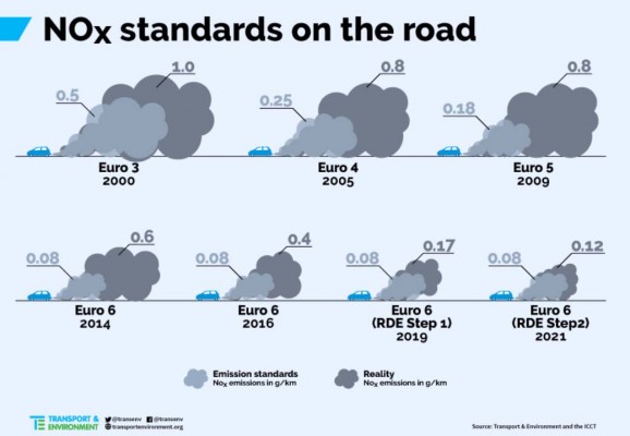 Όπως θα δείτε παρακάτω στα πολύ ενδιαφέρονται εικονογραφήματα (παραπάνω φαίνονται τα στάνταρ περί NOx), τα στοιχεία προέρχονται από μετρήσεις σε 230 αυτοκίνητα που έγιναν σε πραγματικές συνθήκες και σε συνεργασία με την βρετανική, γαλλική και γερμανική κυβέρνηση.