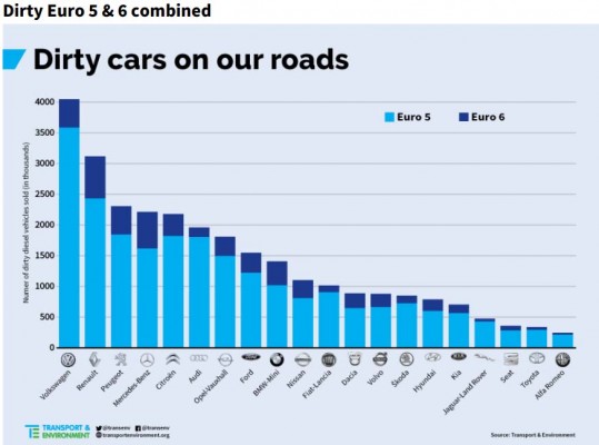 Περίπου ένα χρόνο μετά το περιβόητο dieselgate μία μελέτη του Transport &Environment (T&E) δείχνει πως τα τρέχοντα ντίζελ αυτοκίνητα της Volkswagen είναι τα λιγότερα ρυπογόνα (τουλάχιστον σε ότι αφορά στα οξείδια αζώτου NOx). H έρευνα αναφέρεται σε μοντέλα του 2016 και προδιαγραφής Euro 6, εξαιρώντας τα πειραγμένα Euro 5 ντίζελ με έτος κατασκευής από το 2011 έως το 2015.