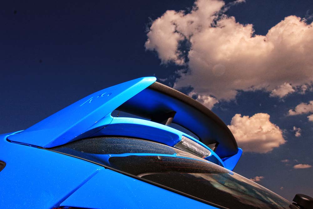 Μπροστά η μάσκα είναι πιο άγρια, η εισαγωγή του αέρα πολύ μεγαλύτερη, υπάρχουν γενικότερα διάφορα σπόιλερ για τη βελτίωση της αεροδυναμικής, ενώ κάποιες σημειακές αναβαθμίσεις στο πλαίσιο έχουν βελτιώσει τη δυσκαμψία κατά 23%. Εννοείται πως ένα τόσο όμορφο πακέτο θα πρέπει να έχει και το ανάλογο περιτύλιγμα. Έτσι, η μπλε βαφή που λαμπυρίζει στο φως του ήλιου σαν γκλίτερ (κοστίζει κάτι παραπάνω από 1.000 ευρώ) έρχεται σε όμορφο κοντράστ με τις μαύρες σφυρήλατες 19άρες ζάντες (κοστίζουν κοντά στα 800 ευρώ). Τα έξτρα συνεχίζονται στο εσωτερικό, αφού για να μην κάθεσαι στα στάνταρ σπορ καθίσματα, αλλά στα καταπληκτικά Recaro, θα πρέπει να καταβάλεις περίπου 1.100 ευρώ και παρά την ψηλή έδραση δεν δυσκολεύτηκα να βολευτώ. Καταπληκτική είναι η πλευρική στήριξη και συγκράτηση του σώματος, ενώ γρήγορα μπορεί κανείς να συνηθίσει την πολύ καλή θέση οδήγησης.