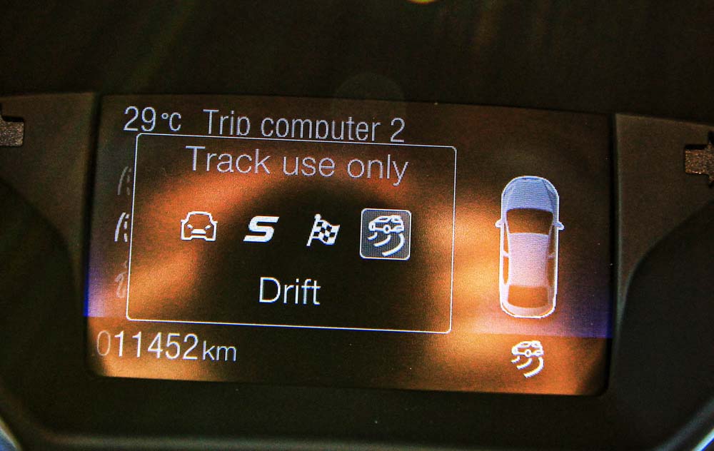 Το πιο απολαυστικό από τα τέσσερα προγράμματα –Normal, Sport, Track και Drift– είναι φυσικά το τελευταίο, που θα σε βοηθήσει να «ντριφτάρεις», σαν να είσαι ο Ken Block! Προσοχή, εδώ θα πρέπει να ξέρεις τι κάνεις, αφού όσο κι αν επιβλέπουν την κατάσταση τα ηλεκτρονικά, δεν θέλει και πολύ για να το χάσεις… Σε νορμάλ συνθήκες γρήγορης οδήγησης και στο Sport πρόγραμμα το Focus RS πλασάρεται ιδανικά και με σωστή τοποθέτηση θα πλασαριστεί γλυκά και γλιστρώντας ελαφρώς με τα τέσσερα. Στο πρόγραμμα Track το γκάζι γίνεται πιο άμεσο, η ανάρτηση σκληραίνει κατά 40%, ο ήχος είναι πιο «πισταδόρικος», το ακριβές τιμόνι γίνεται ακριβέστερο. Στα συν ο εξαιρετικός στα κουμπώματά του επιλογέας ταχυτήτων, ενώ τα φρένα (4-πίστονα μπροστά με δίσκους 350 χλστ.) δεν μάσησαν σε κανένα σημείο της «κατάβασής» μας από την Πάρνηθα. Εννοείται πως στην καθημερινή χρήση το σωστό πρόγραμμα είναι το Normal.