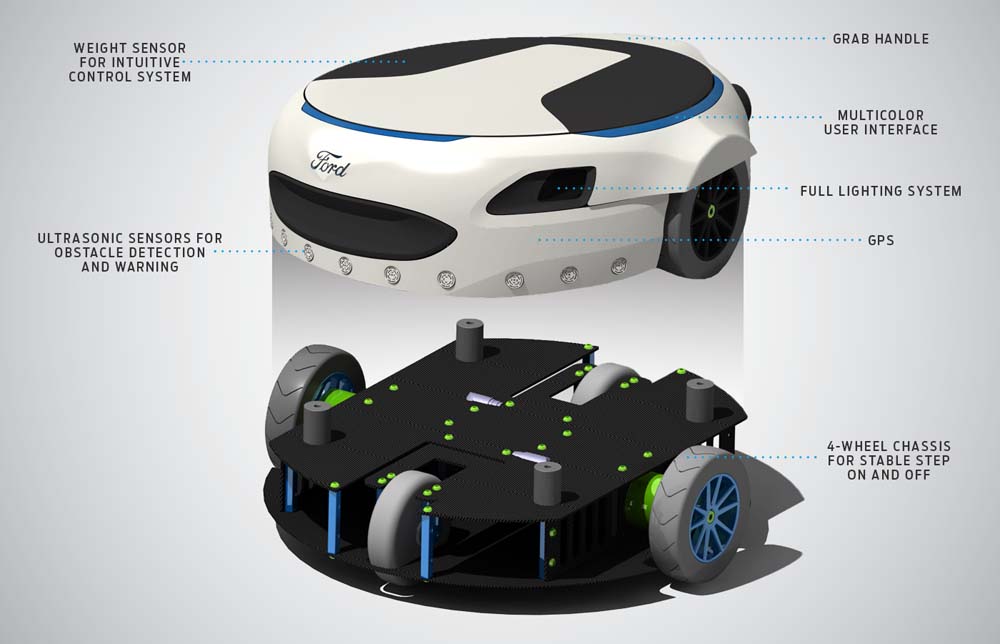 Further with Ford Carr-E GraphicΘέμα του διαγωνισμού είναι η δημιουργία ηλεκτρικών, συσκευών προσωπικής υποστήριξης που θα συμβάλλουν στη βελτίωση των μετακινήσεων σε περιοχές όπου οχήματα δεν επιτρέπονται ή θα αυξήσουν την πρακτικότητα, και θα καθοδηγούν τους οδηγούς να φτάσουν στον τελικό προορισμό αφού παρκάρουν το αυτοκίνητο τους. Το Carr-E can μπορεί να μεταφέρει άτομα ή αντικείμενα έως 120 kg, έχει αυτονομία 22 km και τελική ταχύτητα 18 km/h, ενώ μπορεί επίσης να χρησιμοποιείται για τη μεταφορά βαρέων αντικειμένων. Οι χρήστες απλά τοποθετούν το αντικείμενο στη συσκευή και αυτή ακολουθεί έναν ηλεκτρονικό δέκτη  που έχουν στην κατοχή τους.