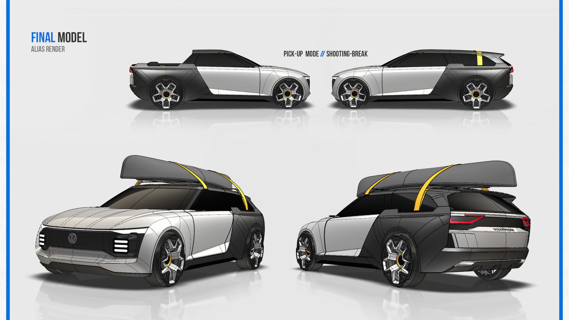 Όταν είναι κλειστό, μπορεί να φιλοξενήσει έως και πέντε επιβάτες, ενώ όταν αφαιρεθεί η κουκούλα, δημιουργείται μία ανοιχτή καρότσα πάνω στην οποία μπορούν να μεταφερθούν από ποδήλατα έως σανίδες του surf. Αν και πρόκειται για μία σχεδιαστική μελέτη, η παραγωγή ενός τέτοιου αυτοκινήτου θα μπορούσε να έχει εμπορικό αντίκρισμα σε αγορές όπως της Αυστραλίας ή των ΗΠΑ…