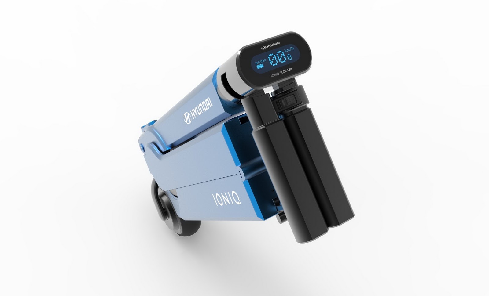 Η κορεάτικη εταιρία κατασκεύασε αυτό το σκούτερ για τους ανθρώπους που χρειάζονται ένα μικρό μεταφορικό μέσο για να τους μετακινήσει από τον χώρο στάθμευσης (ή επαναφόρτισης του ηλεκτρικού τους οχήματος) έως το γραφείο τους. Όπως βλέπουμε μπορεί να διπλωθεί και να γίνει τόσο μικρό ώστε να μπορεί να το κρατά κάποιος στο χέρι, ενώ η μεταφορά του γίνεται μέσα σε ειδική θήκη στο ηλεκτροκίνητο Ioniq (όπου και φορτίζεται η μπαταρία του).