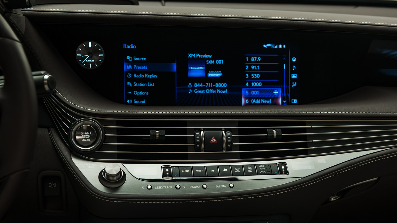 Ο διάκοσμος είναι σύγχρονος και λουσάτος, στο ταμπλό δεσπόζει η οθόνη αφής των 12,3 ιντσών από την οποία ελέγχονται τα πάντα, το έγχρωμο HUD είναι αυτή τη στιγμή το μεγαλύτερο παγκοσμίως, ενώ οι μηχανικοί των Ιαπώνων έδωσαν ιδιαίτερα έμφαση στη μείωση του επιπέδου θορύβου στην καμπίνα. Μονώνοντας ότι μπορούσαν να μειώσουν, ελαχιστοποιώντας τον ήχο από την εξάτμιση, αλλά και χρησιμοποιώντας ενεργό σύστημα περιορισμού του θορύβου, μέσω των ηχείων του ηχοσυστήματος. Το οποίο μπορεί, στην περίπτωση που είναι το κορυφαίο της Mark Levinson, να παράγει και ήχο 3D Surround.
