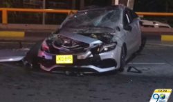Από την κάμερα ενός από τα αυτοκίνητα που ακολουθούσαν, αλλά και την κάμερα ασφαλείας του τούνελ, στην έξοδο της στροφής ο οδηγός της A45 χάνει τον έλεγχο και πέφτει με δύναμη στον τοίχο. Στην συνέχεια ανατρέπεται και χτυπά με δύναμη πάνω στις μπαριέρες. Παρά το ότι η έξοδος συμβαίνει με πολλά χιλιόμετρα, ευτυχώς δεν υπήρξαν θύματα, παρά μόνο τραυματισμός του οδηγού της Mercedes. Ας πρόσεχε και στο μέλλον ας το ξανασκεφτεί πριν κάνει κόντρες…