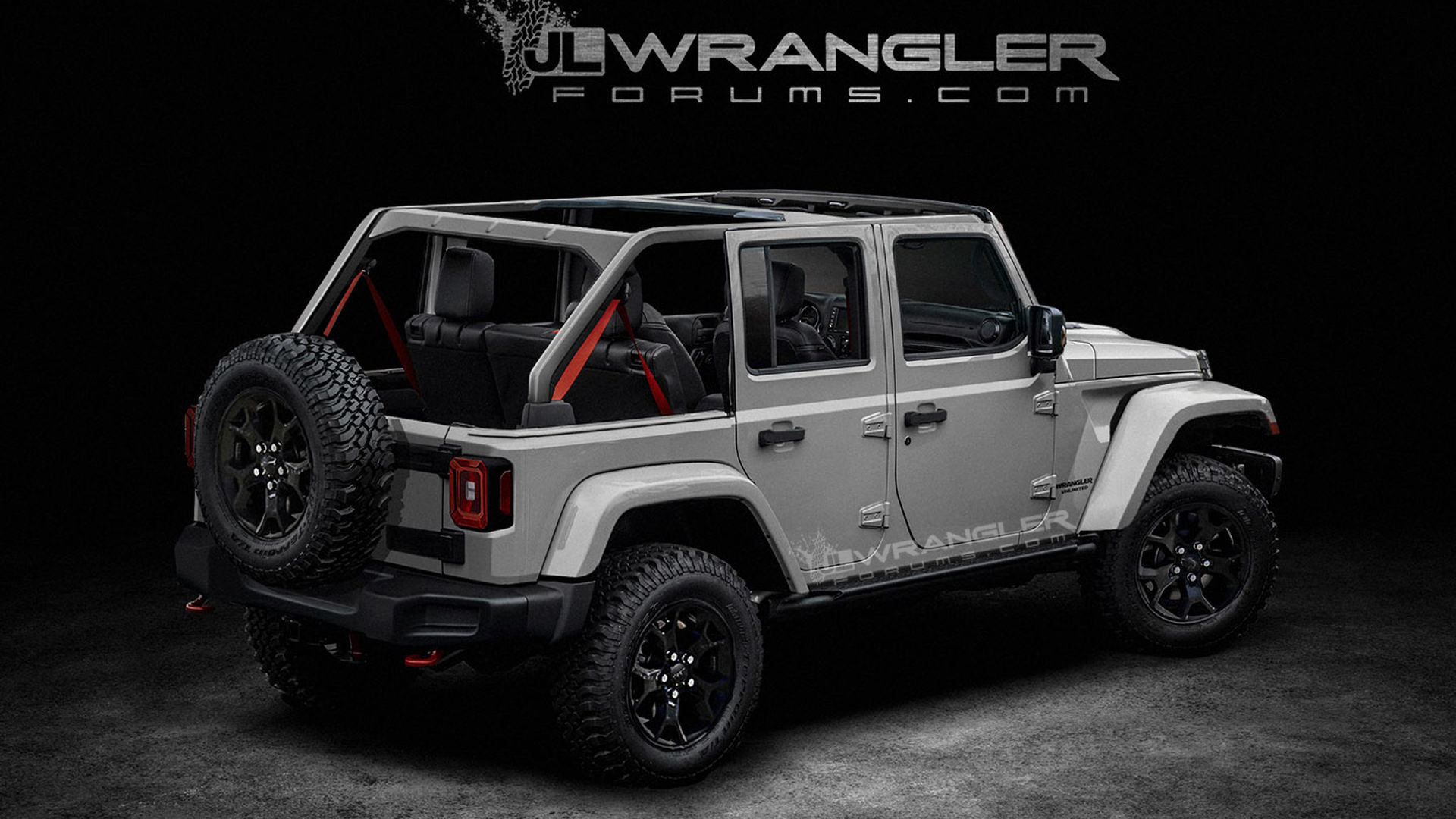 Αξιοσημείωτη λεπτομέρεια είναι πως στην έκδοση που διέρρευσε υπάρχει αφαιρούμενη οροφή και πόρτες, ενώ το επίπεδο παρμπρίζ είναι μεν και εδώ αναδιπλούμενο, αλλά υπάρχουν στη νέα γενιά δύο μεντεσέδες στα δύο άκρα αντί για έναν που υπήρχε μέχρι σήμερα στο κέντρο. Η ανεξάρτητη ανάρτηση που αποτελεί σήματα κατατεθέν του Wrangler θα διατηρηθεί, ενώ θα υπάρχει εκτενής χρήση αλουμινίου για να μειωθεί το βάρος.