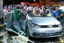 Το VW που βρίσκεται στο βενζινάδικο ανεφοδιάζεται -όπως μαθαίνουμε από τα στοιχεία που συνοδεύουν το βίντεο- σε CNG. Kάτι όμως δεν πηγαίνει καλά και ακολουθεί μία τρομακτική έκρηξη από την οποία σκοτώνεται μία γυναίκα -μάλλον η οδηγός του αυτοκινήτου- και τραυματίζονται τρεις άλλοι άνθρωποι. Όσο για το αυτοκίνητο αυτό έγινε κυριολεκτικά κομμάτια όπως βλέπουμε στις φωτογραφίες.