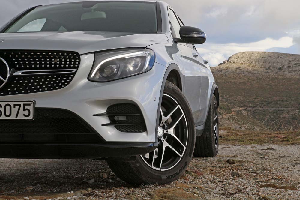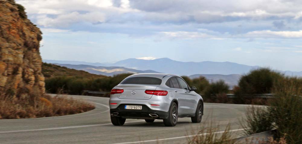 Το σπορ χαρακτήρα της GLC Coupe τονίζει η στάνταρ σπορ ανάρτηση, όπως και ο κοντύτερος λόγος της κρεμαγέρας για καλύτερη αμεσότητα και ακρίβεια του τιμονιού. Το αποτέλεσμα είναι ένα SUV που το νιώθεις να στρίβει σαν ένα κομμάτι και που στις στροφές καταφέρνει να κρύβει τον όγκο του. Στις πιο κλειστές υπάρχει μια πιο έντονη τάση για υποστροφή, ενώ ξεκινώντας από στάση και στον επιτόπιο ελιγμό υπάρχουν στιγμές που μπορεί να ακούσεις την τετρακίνηση να κουρδίζει ελαφρώς μπροστά (όπως είπα μόνο από στάση και με κλειδωμένο το τιμόνι).