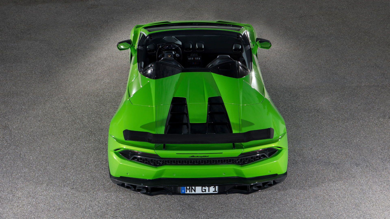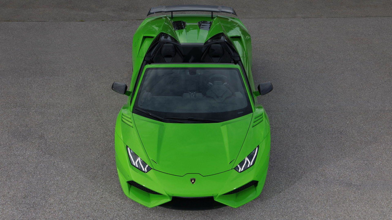 Σαν αυτή που βλέπετε, με το φανταχτερό και φαρδύτερο κατά 20,3(!) εκατοστά body-kit, θα αναβαθμιστούν μόλις 11 ανοιχτές Huracan. Η βελτίωση περιλαμβάνει πολύ κάρμπον, νέα αεροδυναμικά βοηθήματα, διαχύτη, πίσω πτέρυγα και πολλά άλλα, ενώ οι τροχοί 20 εμπρός και 21 ιντσών πίσω (με λάστιχα διάστασης 245/30 και 325/25, αντίστοιχα) δένουν μια χαρά με το τουμπανιασμένο σύνολο. Το οποίο βρίσκεται και πιο κοντά στο έδαφος κατά 35 χλστ. λόγω της νέας και χαμηλωμένης ανάρτησης, ενώ το πακέτο συμπληρώνουν πολλά άλλα γλυκάδια όπως οι νέες εξατμίσεις… για ακόμη πιο ταυρίσιο ήχο.