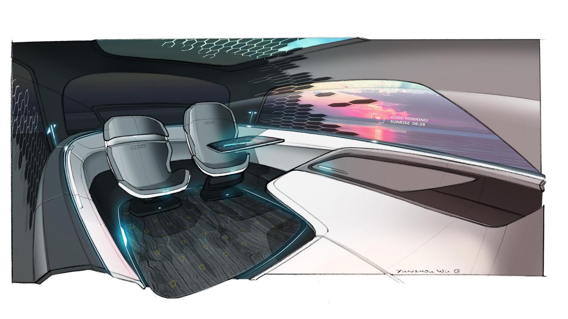 Όπως βλέπουμε τίποτα δεν θυμίζει αυτοκίνητο, καθώς όπως είναι προφανές τα οχήματα σ’ εκείνα τα χρόνια θα είναι πλήρως αυτόνομα, χωρίς την ανάγκη να έχουν τιμόνια ή χειριστήρια. Αντίθετα θα προσφέρουν έναν χώρο που θα θυμίζει σαλόνι ή εργασιακό περιβάλλον, ανάλογα με τις επιθυμίες του οδηγού και των επιβατών. Οι λύσεις και οι ιδέες που δοκιμάζουν οι μηχανικοί και οι σχεδιαστές της Audi είναι πραγματικά πρωτοποριακές και θυμίζουν -ή και ξεπερνούν- τις ταινίες επιστημονικής φαντασίας.