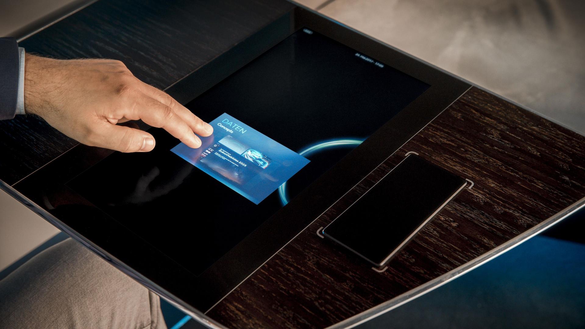 Αυτό που εντυπωσιάζει είναι ότι όλες οι γυάλινες επιφάνειες εκτός από την επαφή με τον έξω κόσμο μπορούν να αποτελούν και “οθόνες” προβολής στοιχείων ή να συνεργάζονται με τα κινητά των επιβατών. Παράλληλα αν το επιθυμήσουν μπορούν να κλείσουν εντελώς την ορατότητα προς τα έξω (ή από έξω προς τα μέσα) αφήνοντας ένα μικρό φινιστρίνι το οποίο μπορεί να τοποθετεί κανείς όπου χρειάζεται με μία απλή κίνηση των χεριών.