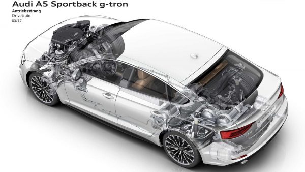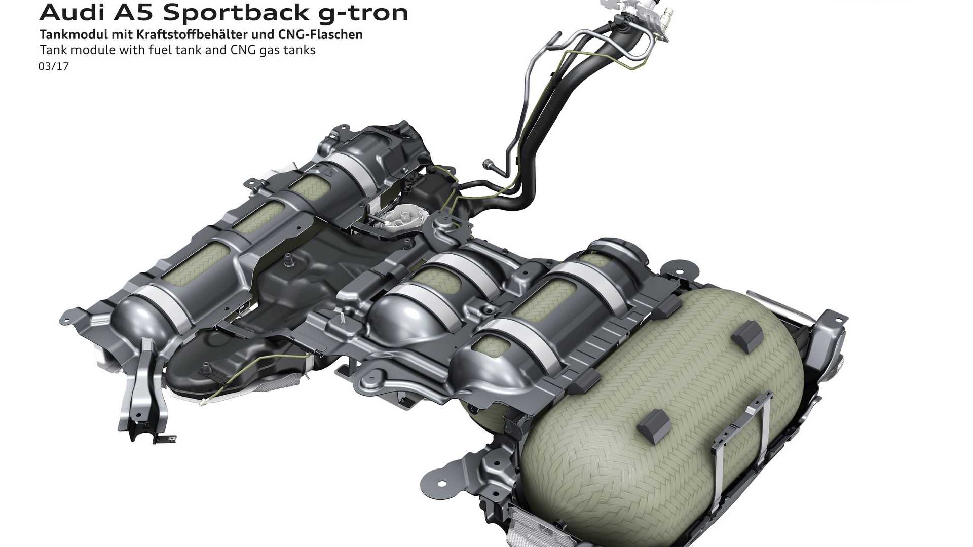 Η δεξαμενή του καυσίμου τοποθετείται κάτω από τον χώρο των αποσκευών ο οποίος είναι μειωμένος, αν και παραμένει ικανοποιητικός φθάνοντας στα 415 λίτρα για το A4 Avant και στα 390 λίτρα για το A5 Sportback. H Audi ανακοινώνει ότι χάρη στην ύπαρξη και των δύο καυσίμων η αυτονομία μπορεί να φθάσει έως και τα 950 χιλιόμετρα, με τα 500 από αυτά να μπορούν να καλυφθούν με το CNG.