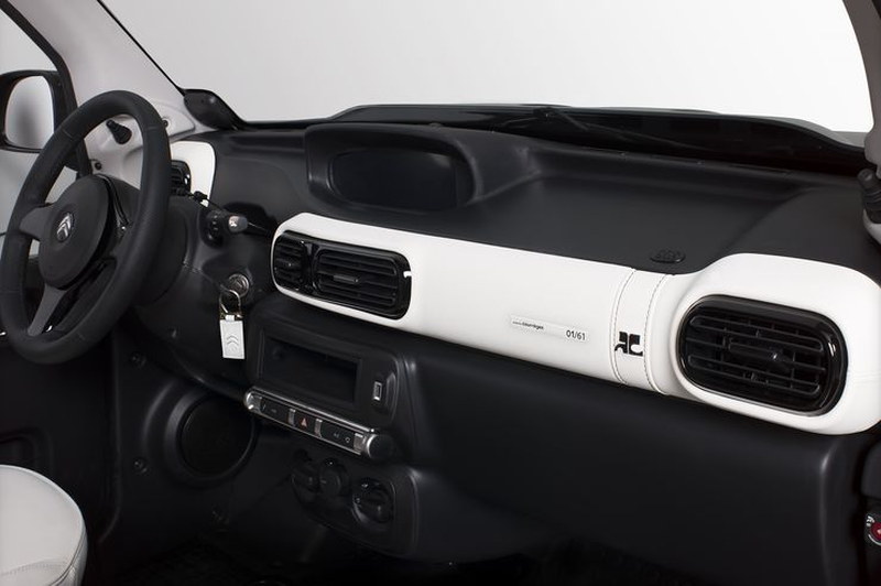 Επιλογή στο χρώμα δεν υπάρχει αφού το E-Mehari styled by Courrèges είναι κατράμι και το αμάξωμα του κατασκευασμένο από συνθετικά υλικά. Αντίθετα, το εσωτερικό του είναι βασικά λευκό, ενώ τα καθίσματα πέρα από πιο άνετα είναι και ρυθμιζόμενα. Επιπλέον υπάρχουν και άλλα στοιχεία εξοπλισμού που απουσιάζουν από τις στάνταρ εκδόσεις, ενώ φυσικά και δεν λείπει το αριθμημένο ταμπελάκι που τονίζει το συλλεκτικό του χαρακτήρα. Αυξημένη είναι η απόσταση από το έδαφος κατά 20 χιλιοστά. Στην περίπτωση που θέλει κάποιος να πάει π.χ. μια βόλτα στην παραλία!