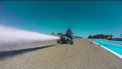 Πατώντας το play θα δείτε τον εφευρέτη και οδηγό στην αρχή της μεγάλης ευθείας της πίστας δοκιμών Paul Ricard. Ανοίγοντας τη σχετική βαλβίδα, η εκτόνωση του νερού είναι τέτοια που κυριολεκτικά εκτοξεύει το τρίκυκλο όχημα προς τα εμπρός. Τα πρώτα 100 χλμ./ώρα από στάση έρχονται σε μόλις 0,55 δλ, ενώ η τελική ταχύτητα φτάνει τα 261 χλμ./ώρα! Αξίζει να αναφερθεί ότι στην εκκίνηση το σώμα του δέχτηκε επιτάχυνση της τάξης των 5,138 g! Ενδιαφέρον πάντως παρουσιάζει και το τέλος του video, όπου με όσο «καύσιμο» του περίσσεψε, ποτίζει και τα λουλούδια…