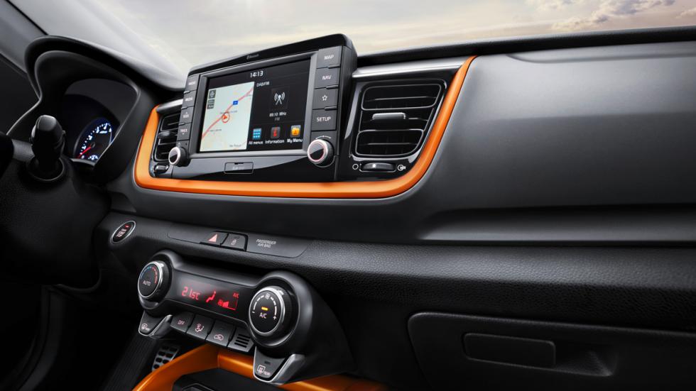 Το όμορφο ταμπλό είναι σύγχρονο και εργονομικό και κατά τα ειωθότα στο κέντρο δεσπόζει μία στάνταρ οθόνη 7’’ με όμορφα γραφικά και εύχρηστο μενού. Θήκες για μικροαντικείμενα υπάρχουν σχεδόν παντού, ανάμεσα στα αναλογικά όργανα υπάρχει μια ευανάγνωστη οθόνη πολλαπλών ενδείξεων, ενώ η πολύ καλή ποιότητα κατασκευής και το προσεγμένο φινίρισμα σε κάνουν να αγνοείς τα σκληρά πλαστικά. Όπως ισχυρίζεται η KIA το Stonic είναι το πιο «εξατομικευμένο» μοντέλο που έχει λανσάρει μέχρι τώρα προσφέροντας επιλογή ανάμεσα σε εννέα βαφές αμαξώματος και πέντε οροφής δημιουργώντας 20 διαφορετικούς ελκυστικούς συνδυασμούς που συμπληρώνουν οι νέας σχεδίασης ζάντες αλουμινίου.