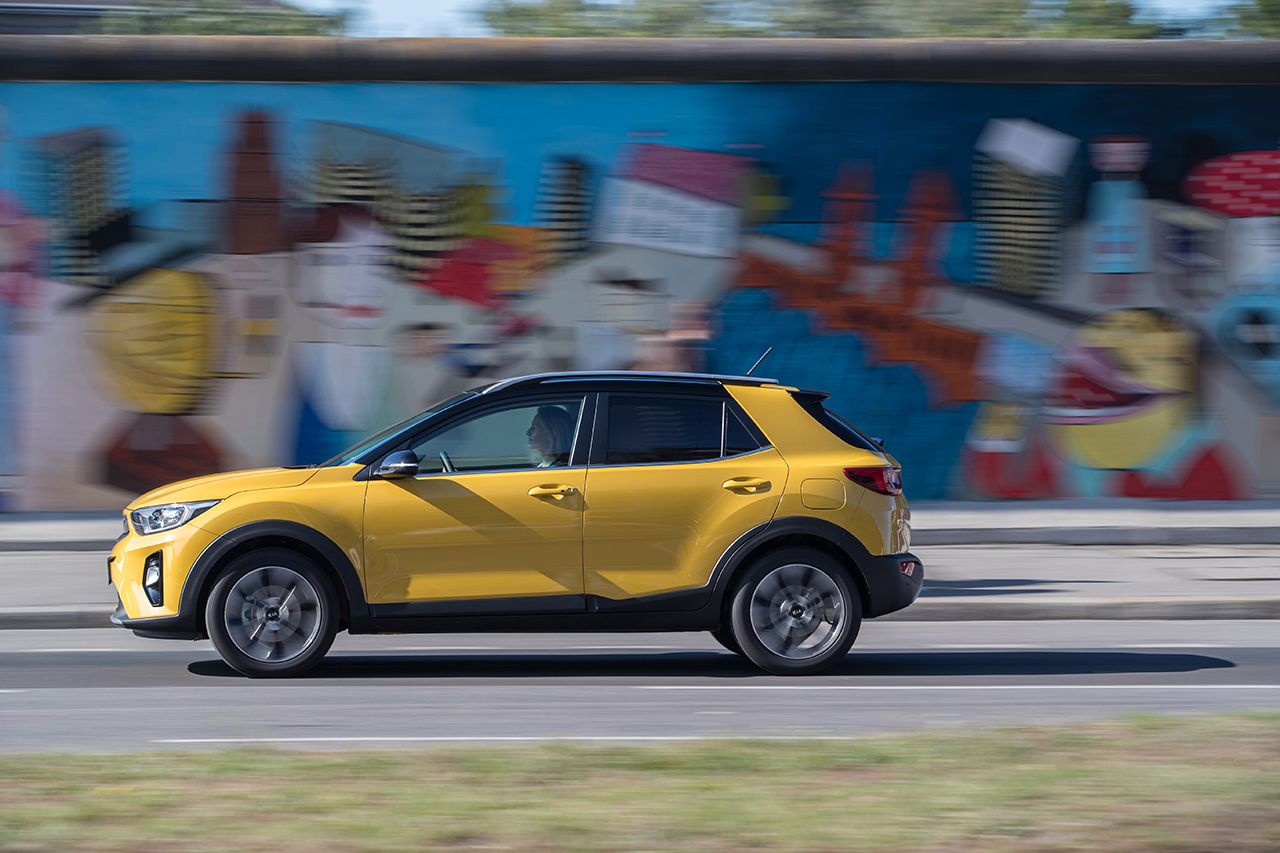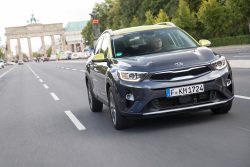 Στο Βερολίνο οδηγήσαμε την τρικύλινδρη turbo έκδοση του Stonic που προσφέρει όλα τα καλά χαρακτηριστικά που συναντάμε και στα άλλα μοντέλα της KIA. Η λειτουργία του είναι ελαστική και ευχάριστα τραχιά στο αυτί, με το τράβηγμα της ροπής να έρχεται από χαμηλά. Γενικότερα το Stonic είναι ένα ευκολοδήγητο μικρό SUV με καλή θέση οδήγησης, καλή ορατότητα προς τα έξω και το τιμόνι να έχει καλό «βάρος» και ακρίβεια με τον επιλογέα να κουμπώνει πρόθυμα. Η ποιότητα κύλισης είναι από τις καλύτερες στην κατηγορία, στις υψηλές ταχύτητες το Stonic εντυπωσιάζει με την σταθερότητα του, ενώ όπως συνηθίζει η KIA για να προσδώσει ένα σπορτίφ τόνο η ανάρτηση είναι ίσως λίγο πιο σφιχτή (ειδικά του ημιάκαμπτου, πίσω) από ότι θα έπρεπε (βέβαια εδώ παίζουν ρόλο οι στάνταρ 17άρες ζάντες, 15άρες έχει μόνο η βασική 1.2) μετριάζοντας κάπως την απόσβεση της.