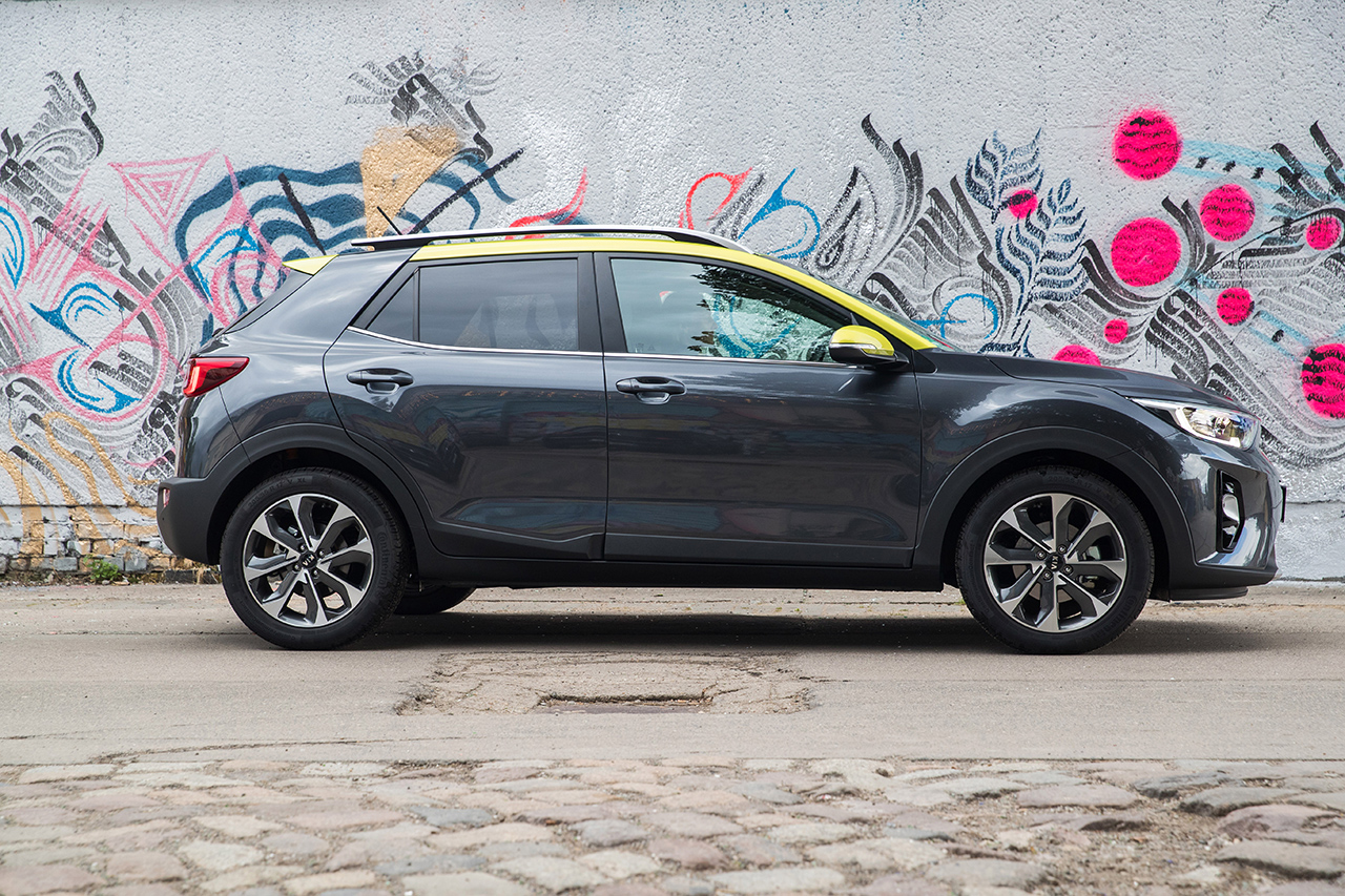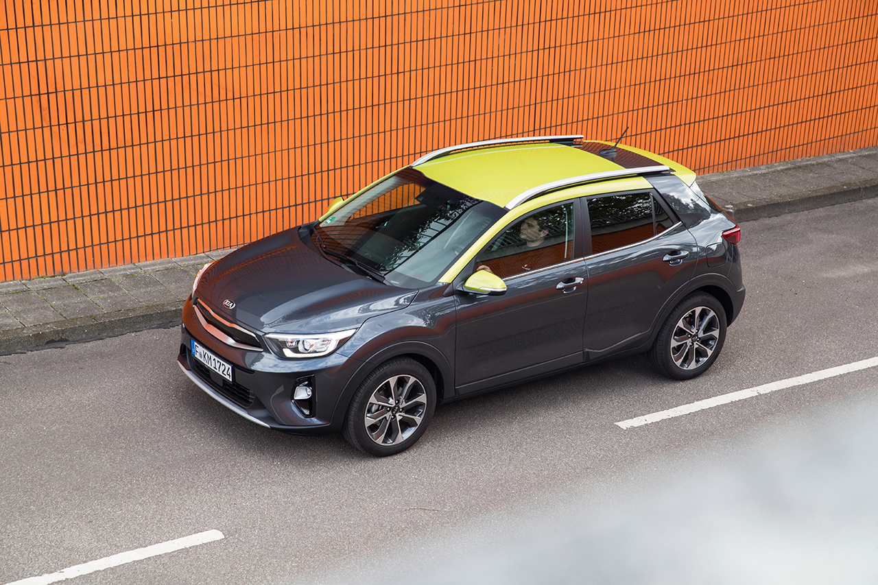 Οι φωτογραφίες αδικούν το όμορφο αμάξωμα (στην κόμπακτ εικόνα συμβάλλουν οι εξαιρετικά μαζεμένοι πρόβολοι με 830 και 730 χλστ. μπροστά και πίσω αντίστοιχα), το οποίο σε μήκος φτάνει τα 4,14 μέτρα. Η διάσταση αυτή κατατάσσει το Stonic στο μέσο όρο των μικρών SUV προσφέροντας από τους καλύτερους χώρους για τους επιβάτες, ειδικά για τους πίσω που έχουν μεγάλη απόσταση τόσο για τα γόνατά τους, όσο και τα κεφάλια τους. Στο γεγονός αυτό συμβάλλει και το σχετικά μεγάλο μεταξόνιο των 2,58 μέτρων με τον χώρο αποσκευών να φτανει τα 352 λίτρα (μαζί με τον κρυφό χώρο κάτω από το κάλυμμα, υπάρχει κιτ ασφαλείας και όχι ρεζέρβα) με την πρακτικότητα να εκτοξεύεται στα 1.155 λίτρα όταν αναδιπλωθούν τα πίσω διαιρούμενα καθίσματα.