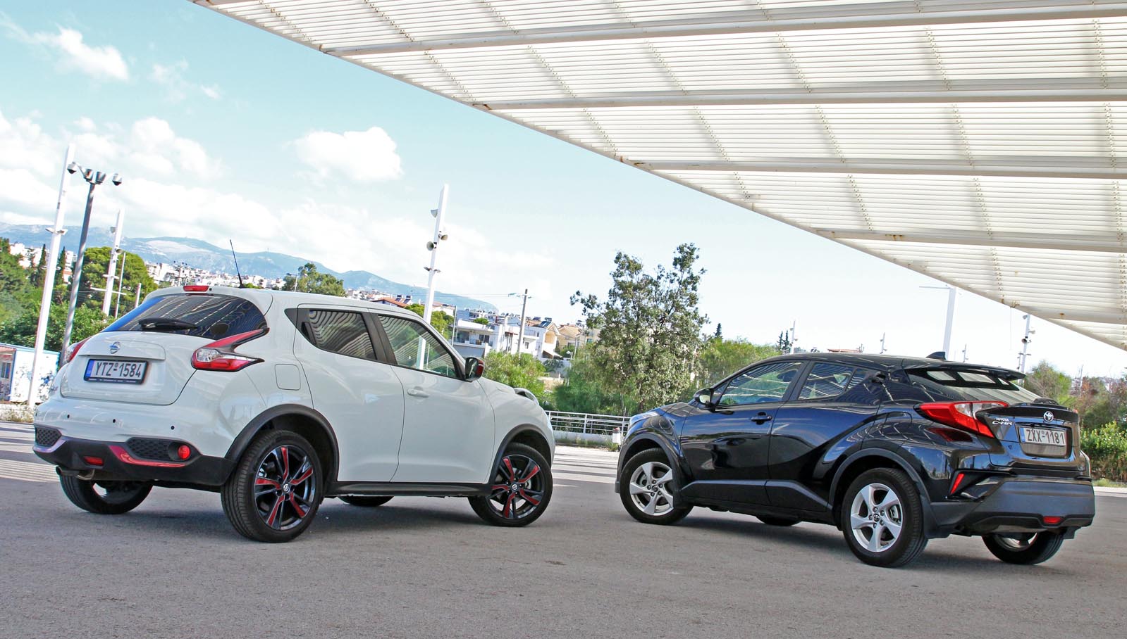 Nissan Juke και Toyota C-HR. Το πρώτο μετράει ήδη αρκετά χρονάκια στην πλάτη του, παρότι με το σχετικό facelift κατορθώνει να κρύβει την ηλικία του. Το δεύτερο πάλι, είναι σαφώς πιο φρέσκο και εξίσου προχωρημένο σχεδιαστικά, με τη δική του στιλιστική άποψη. Τι τα ενώνει; Δύο υπερτροφοδοτούμενοι κινητήρες χαμηλού κυβισμού και η ίδια ανάγκη να ξεχωρίζουν. Τι τα χωρίζει; Ας αρχίσουμε να ξετυλίγουμε το κουβάρι…