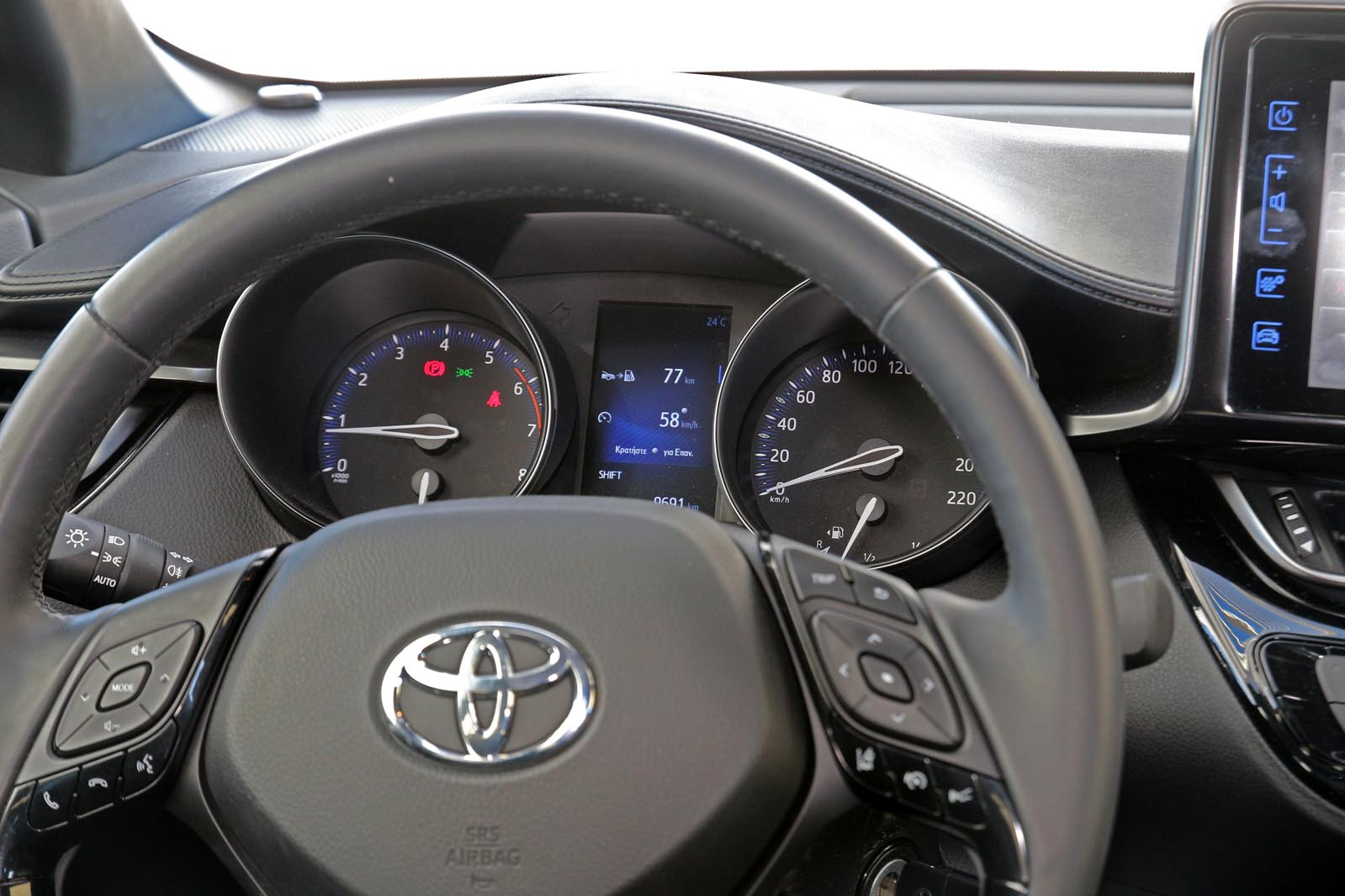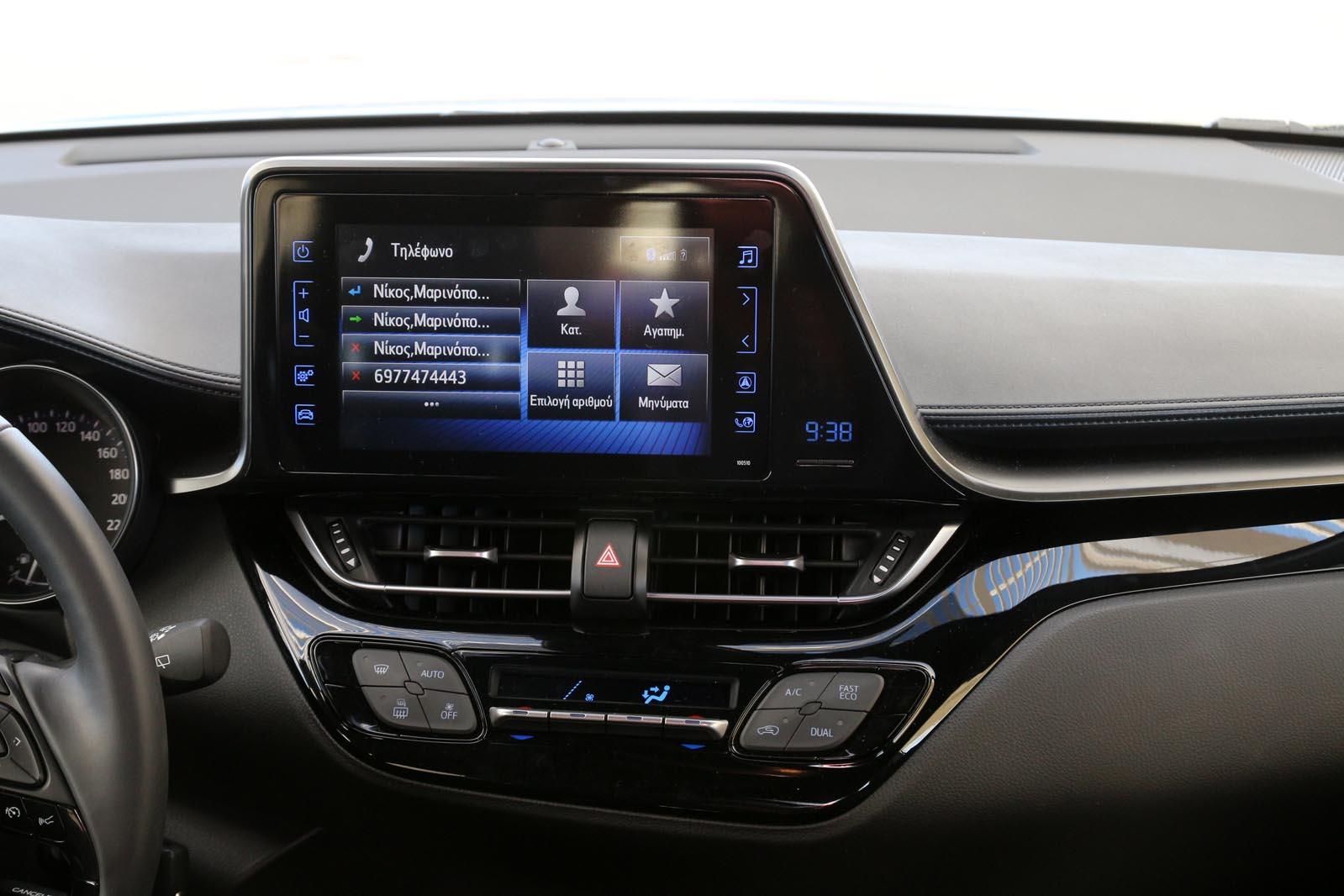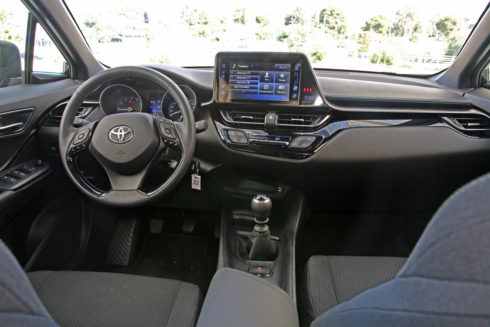 Η ίδια, προχωρημένη, σχεδιαστική πένα συνεχίζει να ζωγραφίζει και στο εσωτερικό των δύο αυτοκινήτων. Με μία πρώτη, υποκειμενική, ματιά, το ταμπλό του C-HR δείχνει πιο φουτουριστικό, χάρη στην εμφατικά προεκταμένη οθόνη αφής που δεσπόζει στην κορυφή του ταμπλό. Η εργονομία του είναι πολύ καλή, με αρκετές θέσεις για μικροαντικείμενα, καλή θέση οδήγησης -με περιορισμένη όμως πλευρική ορατότητα- και ποιοτικά, στην πλειοψηφία τους, υλικά κατασκευής.
