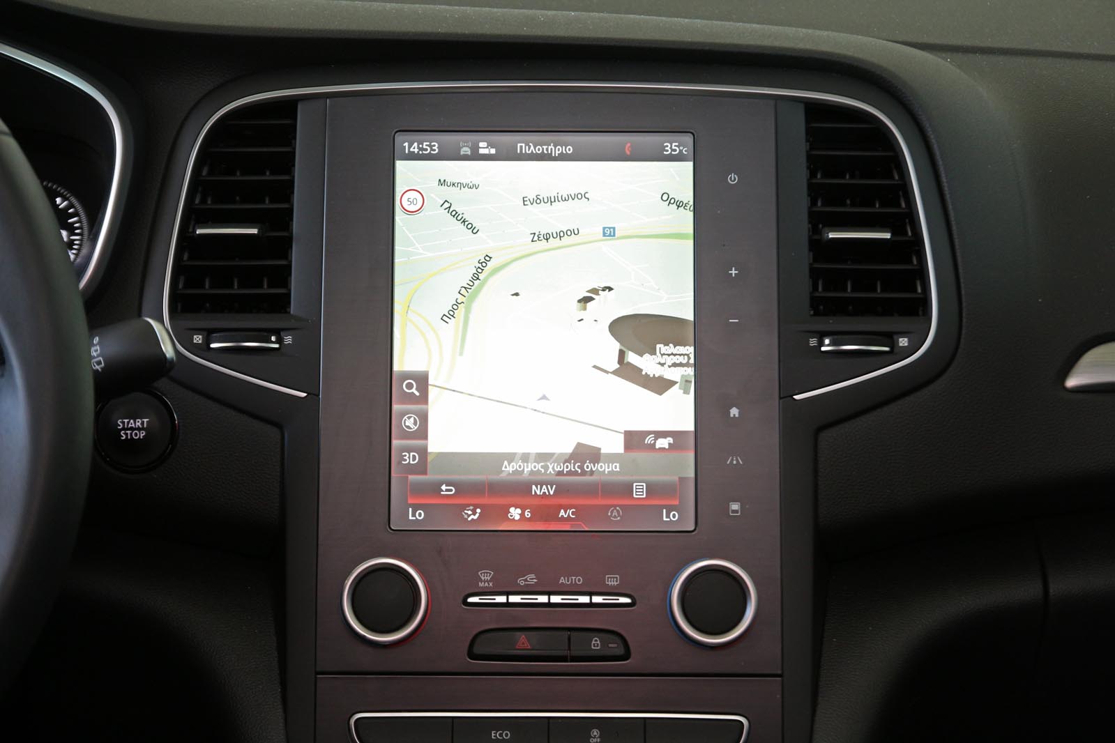 Από την άλλη, έχουμε το Megane, ένα μοντέλο πρακτικά καινούριο και σίγουρα πιο κοντά στην αιχμή της τεχνολογίας. Αυτό δεν ξεχωρίζει μόνο από την όψη (είναι γεγονός ότι πολλές γενιές Megane προκαλούσαν με το σχεδιασμό τους) αλλά και με τα επί μέρους χαρακτηριστικά του. Πάρτε για παράδειγμα τη νέα, μεγάλη οθόνη αφής 8,7 ιντσών που δεσπόζει στην κεντρική κονσόλα. Σύμφωνα με τα τελευταία πρότυπα της μόδας, υιοθετεί ένα σχήμα tablet, ενώ προσφέρει λειτουργίες που η συντριπτική πλειοψηφία του ανταγωνισμού δεν μπορεί να φανταστεί. Με αντίτιμο όμως μία δυσκολία στη χρήση, ακόμα και αφού περάσει το πρώτο διάστημα εξοικείωσης…