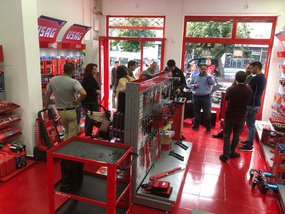 H Ιταλική εταιρία εργαλείων USAG με φόντο το κόκκινο χρώμα της μάρκας έκανε αισθητή την παρουσία της σε κεντρικό σημείο στο Βοτανικό (Σπύρου Πάτση 21, Αθήνα) προσκαλώντας κόσμο από το χώρο των εργαλείων αλλά και του αυτοκινήτου για να καλωσορίσουν το νέο αυτό επαγγελματικό ξεκίνημα.