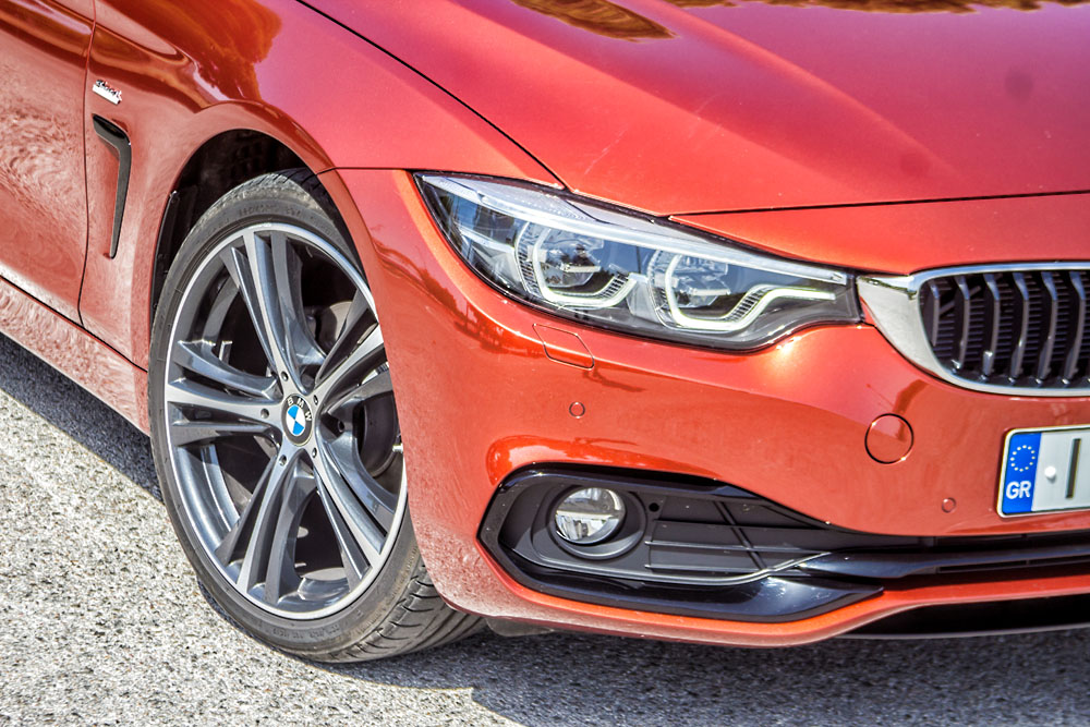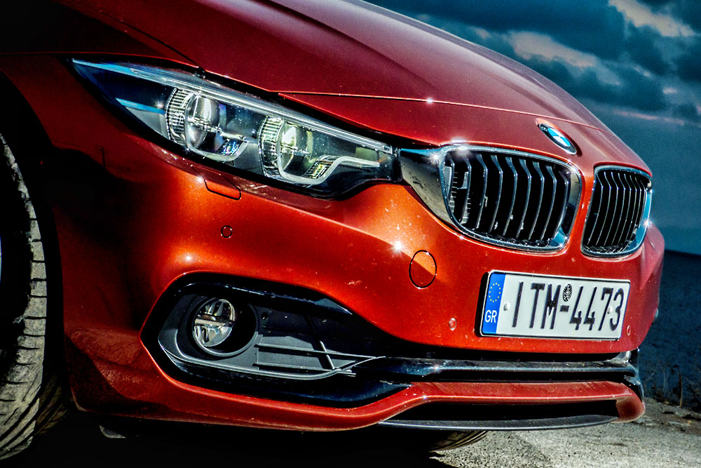 Το πρόσφατο facelift της «τεσσάρας» ενσωμάτωσε στο αυτοκίνητο ορισμένα ενδιαφέροντα χαρακτηριστικά. Η πιο επιτυχημένη αλλαγή είναι, ίσως, αυτή των εμπρόσθιων φωτιστικών σωμάτων, τα LED των οποίων χαρίζουν ένα πιο άγριο, νέο, βλέμμα. Αυτή, σε συνδυασμό με τη μεγαλύτερη αεροεισαγωγή χαμηλά και κάνα δυο πινελιές ακόμα, έδωσαν στη Σειρά 4 λίγη παραπάνω τεστοστερόνη.