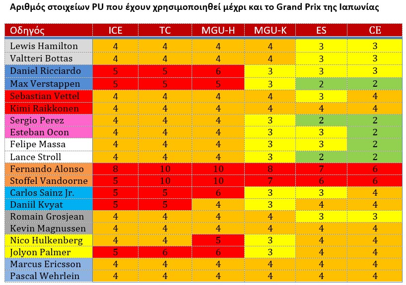 Τεχνική σύνοψη. Η Mercedes είναι το λογικό φαβορί για άλλον έναν αγώνα και θα έχει ως πρώτο της μέλημα την εξασφάλιση του πρωταθλήματος των κατασκευαστών στο Ώστιν. Αυτό θα συμβεί αν οι οδηγοί της τερματίσουν στις θέσεις 3-4, ανεξαρτήτως του τι θα κάνει η Ferrari. Ο Hamilton μπορεί κι αυτός να κατακτήσει το πρωτάθλημα στην COTA αν μαζέψει 16 βαθμούς περισσότερους από τον Vettel. Μετά την Ιαπωνία έγινε γνωστό ότι ο Βρετανός αντιμετώπισε πρόβλημα παρόμοιο με του Vettel στον κινητήρα με κάποιο από τα μπουζί. Οι άνθρωποι της Mercedes, όμως, το ανακάλυψαν νωρίς (λίγο μετά το τέλος του parc ferme) με αποτέλεσμα να προλάβουν να αλλάξουν το ελαττωματικό κομμάτι εγκαίρως.