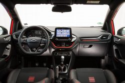 Fiesta ST-Line. Η ποιότητα κύλισης κυμαίνεται σε εξαιρετικά επίπεδα, ειδικά στην έκδοση Vignale με τον πολυτελή χαρακτήρα και τον εξοπλισμό που τα έχει σχεδόν όλα. Στην περίπτωση της ST-Line όλα είναι προσανατολισμένα στο σπορ στοιχείο και για αυτό το αμάξωμα έχει σπορ ζάντες, γρίλια και προφυλακτήρες (στο εσωτερικό υπάρχουν σπορ καθίσματα, πεντάλ, «κοφτό» τιμόνι κ.α.), ενώ είναι χαμηλωμένο κατά 10 χιλιοστά με πιο σφιχτό συνδυασμό ελατηρίων και αμορτισέρ. Κάτι που γίνεται αντιληπτό και στον δρόμο με το Fiesta να παρουσιάζει καλύτερο έλεγχο στο όριο και να δείχνει πιο στιβαρό, επισκιάζοντας σε ένα μικρό βαθμό την ποιότητα κύλισης (κάτι λογικό λόγω της πιο σφιχτής ανάρτησης) και ακόμη λιγότερο τον βαθμό απόσβεσης (πάντα σε σχέση με την Vignale).