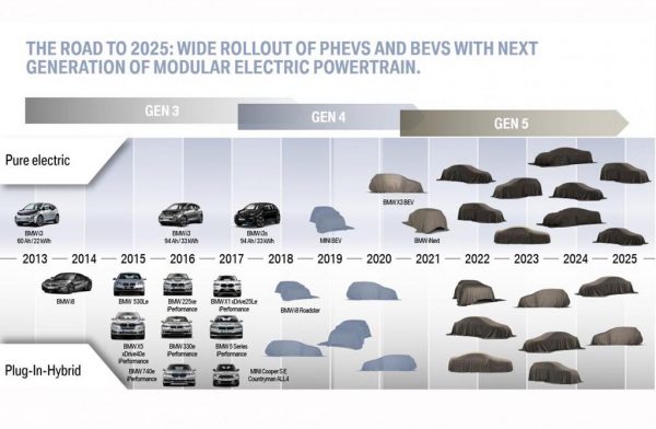 Ξεκινώντας από τα i3 Roadster και Mini Cooper S E ALL4 θα παρουσιαστούν πολλά και διάφορα PHEV και EV μοντέλα στο πέρασμα της επόμενης οκταετίας. Ανάμεσα σε αυτά θα δούμε το i5, την iX3 και περνώντας στην 5η γενιά μπαταριών θα υπάρξει ένα νέο μοντέλο με φουτουριστική σχεδίαση και πιθανότατα με την ονομασία iNext.