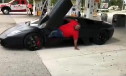 Το βιντεάκι που βλέπετε παραπάνω τραβήχτηκε πρόσφατα σε ένα πρατήριο καυσίμων με πρωταγωνιστή τον Khubuluse Zuma, μπίζνεσμαν και ανιψιός του Jacob Zuma, του προέδρου της Νοτίου Αφρικής. O οποίος μάλλον θα τα έχει πάρει βλέποντας τον εαυτό να αγκομαχά για να βγει από μία Lamborghini Murcielago και τελικά το καταφέρνει ακουμπώντας το χέρι του στο έδαφος.
