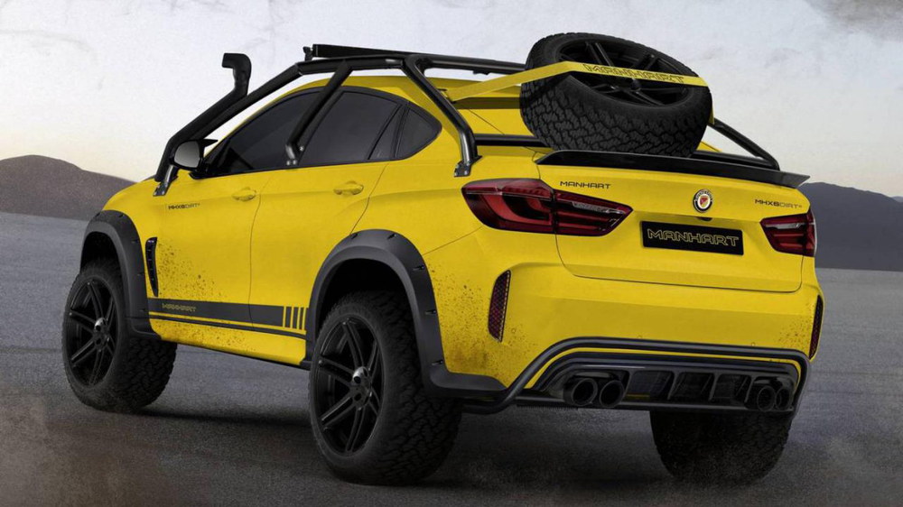Αισθητικά η… αγνώριστη X6M ξεχωρίζει από το εξωτερικά τοποθετημένο roll-bar, τη ρεζέρβα που βρίσκεται πλέον πάνω στην 5η πόρτα, τον εργάτη μπροστά αλλά και τον αναπνευστήρα (snorkel) προκειμένου να μπορεί να περνά και μέσα από νερό σημαντικού βάθους. Η Manhart MHX6 Dirt² θα κατασκευαστεί μόλις σε πέντε αυτοκίνητα με το καθένα να κοστίζει από 395.000 ευρώ.