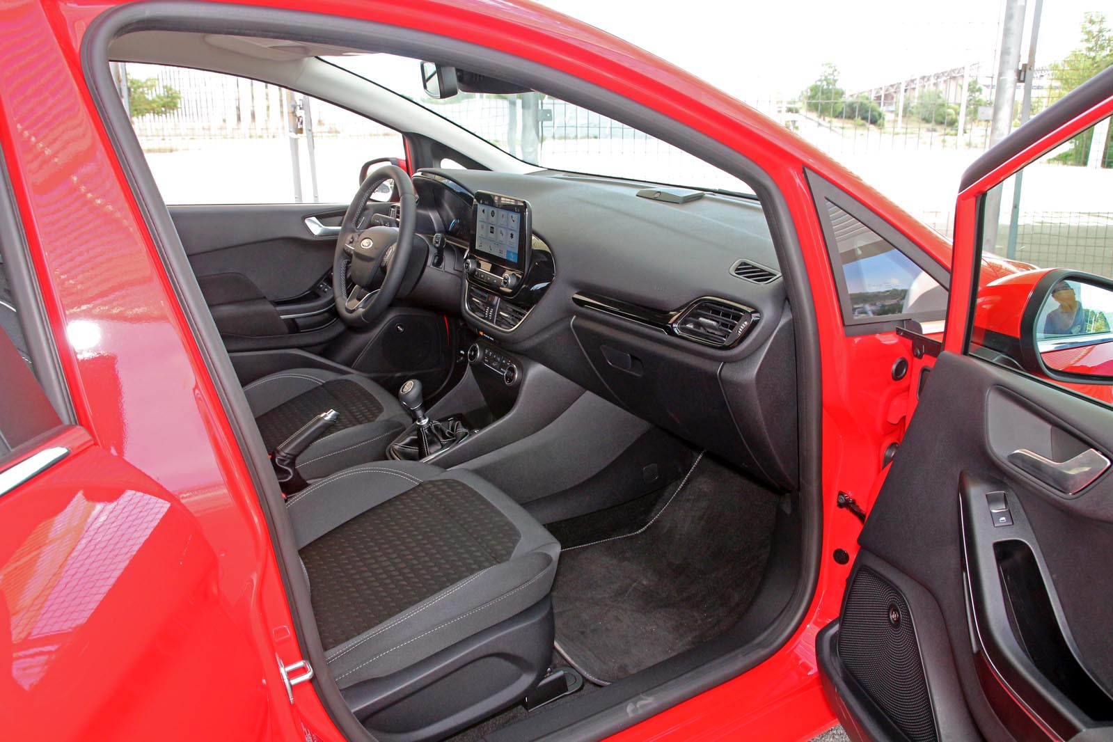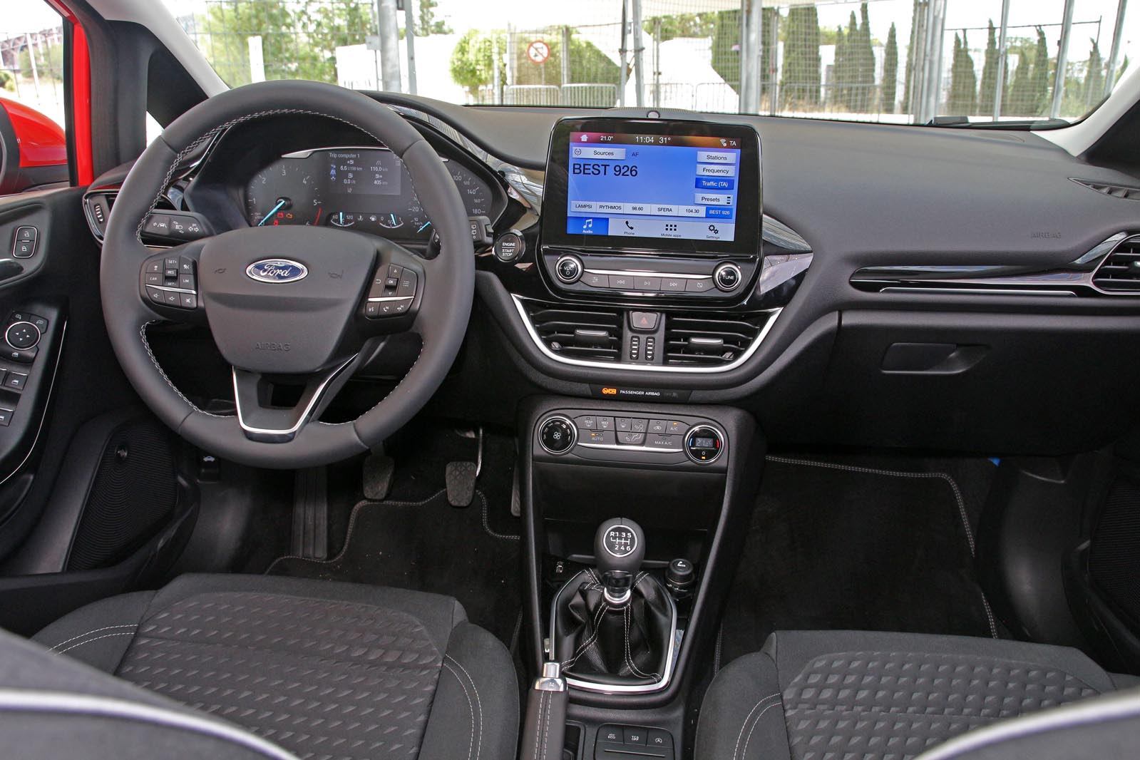 Το Fiesta, από την πλευρά του, έχει και αυτό κάνει βήματα προόδου. Η σχεδίαση του ταμπλό είναι πιο ανάγλυφη, με την αντίστοιχα μεγάλη οθόνη των 8 ιντσών να βρίσκεται τοποθετημένη σε καλύτερο ύψος και θέση από αυτή του Ibiza. Η ποιότητα κατασκευής είναι από τις καλύτερες στην κατηγορία, ενώ και τα χρησιμοποιούμενα υλικά δείχνουν ελαφρά ποιοτικότερα από αυτά του αντιπάλου του. Σε θέματα πρακτικότητας και εργονομίας μπορούμε να πούμε ότι υπάρχει ισοβαθμία, ενώ σε θέματα εξοπλισμού το Fiesta βάζει και αυτό πολύ ψηλά τον πήχη.
