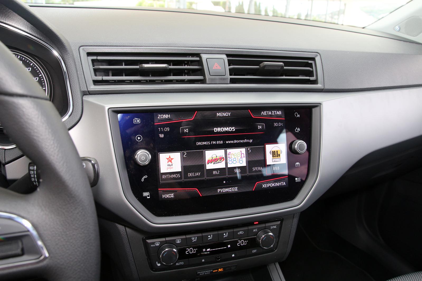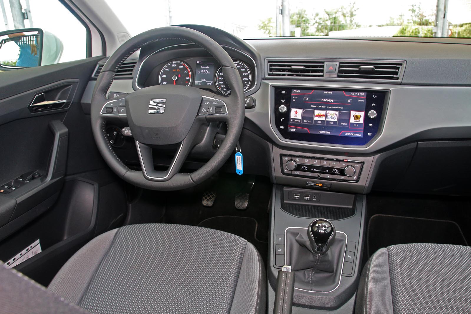 Τα πράγματα διαφοροποιούνται κάπως στο εσωτερικό. Με το χέρι την καρδιά, θα πούμε ότι το ταμπλό του νέου Ibiza έχει διανύσει μεγαλύτερη απόσταση σε σχέση με αυτό του Fiesta. Από το μάλλον αδιάφορο προς μέτριο αποτέλεσμα της προηγούμενης γενιάς, είναι πλέον σύγχρονο, απόλυτα πρακτικό και με μία όμορφα ενσωματωμένη μεγάλη οθόνη να δεσπόζει στο κέντρο του. Τα χρησιμοποιούμενα υλικά είναι καλής ποιότητας, υπάρχουν εύχρηστες θέσεις για μικροαντικείμενα και αρκετά ηλεκτρονικά συστήματα ασφάλειας και ψυχαγωγίας. Γενικά μιλάμε για ένα πλήρες και ολοκληρωμένο πακέτο, που καλύπτει τις σύγχρονες απαιτήσεις.