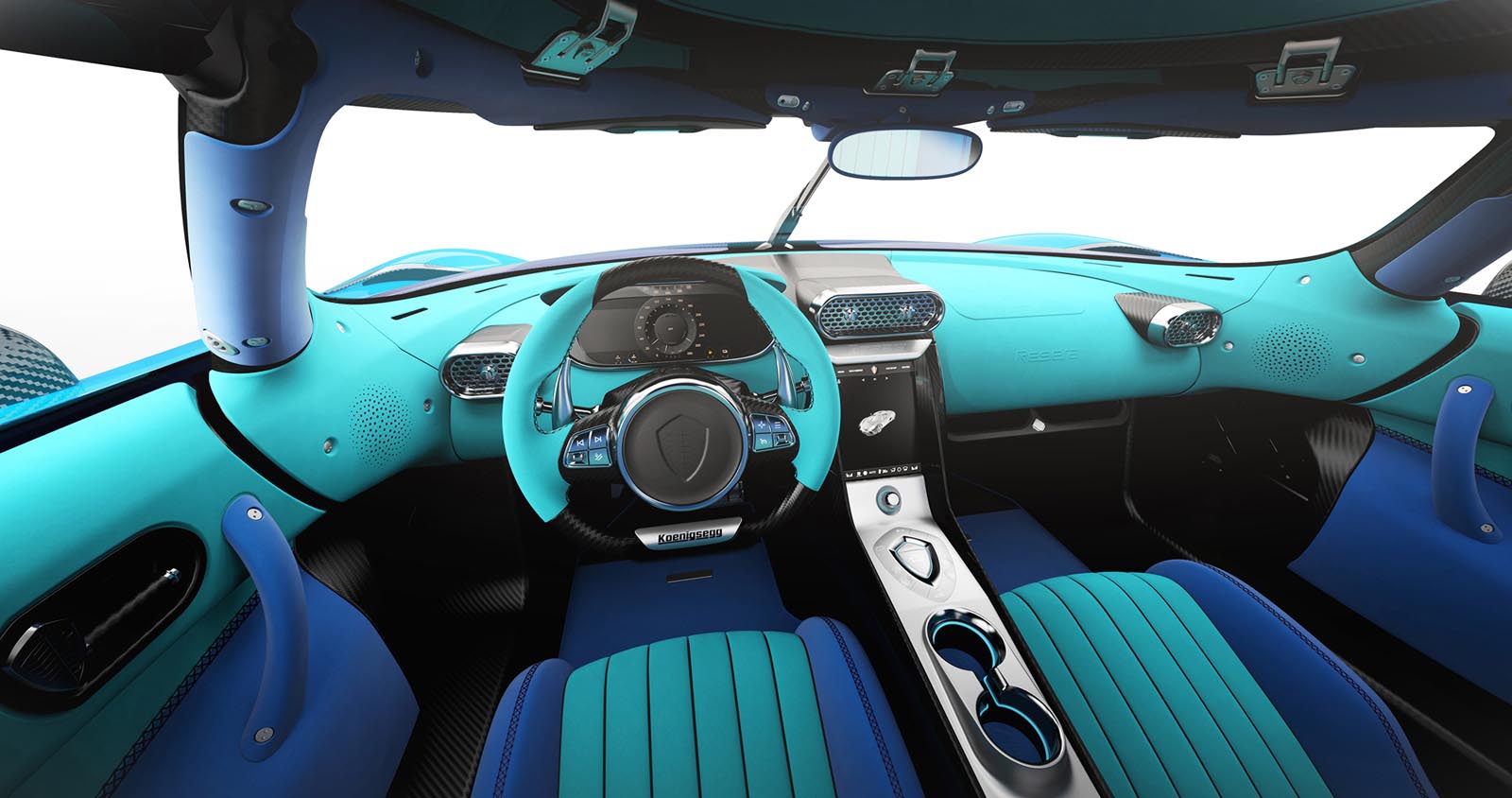 Και οι δύο έχουν μία κάρμπον λωρίδα να διατρέχει το αμάξωμα με την διαφορά πως στην λευκή είναι μαύρη και στην μπλε πιο σκούρα. Υπέροχα είναι και τα εσωτερικά των δύο Regera με την λευκή να έχει καροτί διάκοσμο και η μπλε με ανάλογες αποχρώσεις. Οι τροχοί της Tresex είναι κατασκευασμένοι από ανθρακονήματα.