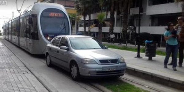 Απίστευτο! Πάρκαρε πάνω στις γραμμές του τραμ!