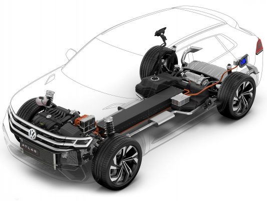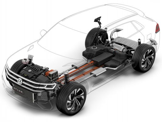 Η βασική έκδοση του Atlas Cross Sport θα είναι μια δίλιτρη τετρακύλινδρη με 235 ίππους με την κορυφαία V6 να αποδίδει απoδίδει 280 ίππους. Επίσης, στη Νέα Υόρκη παρουσιάστηκε μια απλή υβριδική έκδοση (HEV) και μία plug-in υβριδική (PHEV). Και στις δύο υπάρχει ένα ηλεκτροκινητήρας 54 ίππων και 220 Nm μπροστά και ένας δεύτερος με 116 ίππους και 270 Nm πίσω.