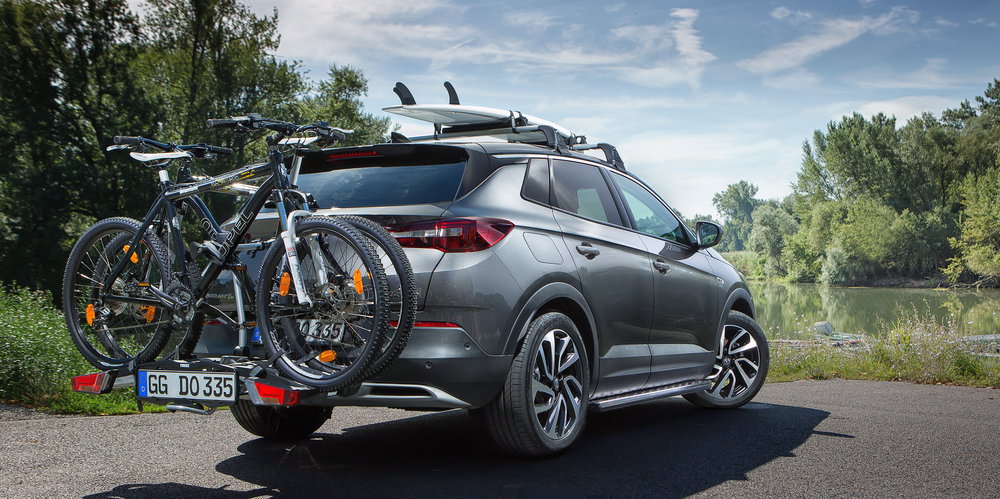 Το Grandland X παρέχει ευελιξία, επιτρέποντάς σας να μεταφέρετε το σπορ εξοπλισμό σας στο αυτοκίνητο. Εάν τα 1.652 λίτρα που σας προσφέρει το SUV για μεταφορά εξοπλισμού και αποσκευών δεν είναι αρκετά, η Opel διαθέτει μία πλούσια γκάμα ευέλικτων συστημάτων για το σκοπό αυτό. Με την αλουμινένια βασική σχάρα και μία πλούσια γκάμα αντίστοιχων συστημάτων της εταίρου της Opel, Thule, οι πελάτες του Grandland X μπορούν να επωφεληθούν από πρόσθετους αποθηκευτικούς χώρους. Για παράδειγμα, τα ποδήλατα μεταφέρονται εύκολα, άνετα και με ασφάλεια με σχάρες της Thule στο πίσω τμήμα του οχήματος. Επιπλέον, μπαγκαζιέρες διαφόρων σχεδίων και διαστάσεων τοποθετούνται στη βασική σχάρα οροφής, όπως η Λευκή μπαγκαζιέρα Opel με προ-εγκατεστημένο σύστημα πρόσδεσης Power-Click. Με διαστάσεις 2.050 x 840 x 450 mm μπορεί να φορτώνεται και να ξεφορτώνεται εύκολα και από τις δύο πλευρές. Αυξάνει την αποθηκευτική ικανότητα του Grandland X έως 460 L. Καθώς τοποθετείται προς τα εμπρός, δεν επηρεάζεται η πρόσβαση στο χώρο αποσκευών.