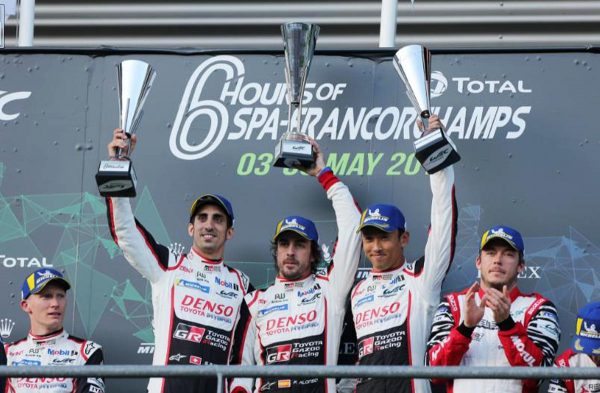 Ο αγώνας ανήκει στο πρωτάθλημα αντοχής WEC και ο Ισπανός είχε να γευτεί νίκη από το GP της Ισπανίας, από το 2013! Συγκεκριμένα, το Toyota TS050 με οδηγούς τους Fernando Alonso, Sebastien Buemi και Κazuki Nakajima τερμάτισαν και με μικρή διαφορά (μόλις 1,44 δευτερόλεπτα) μπροστά από την δεύτερη συμμετοχή της Toyota με ίδιο αυτοκίνητο. Στην τρίτη και την τέταρτη θέση βρέθηκαν δύο πρωτότυπα R-13 Gibsons, φτιαγμένα από την Οreca, όντας τα γρηγορότερα αυτοκίνητα του αγώνα που δεν έχουν υβριδικό σύστημα (όπως τα Toyota).