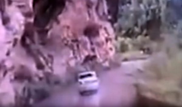 Ακόμη και σε αυτό το κακής ποιότητας βίντεο που αναρτήθηκε στο κανάλι της Daily Mail μπορείτε να δείτε να ξεκολλά ένας βράχος από την πλαγιά και να καταπλακώνει ένα διερχόμενο αυτοκίνητο με τέσσερις επιβάτες. Οι οποίοι μπορεί να είχαν την ατυχία να περνούν ακριβώς την ώρα που πέφτει ο βράχος, αλλά την ευτυχία πως την γλύτωσαν με μικρούς τραυματισμούς. Πραγματικά οι επιβαίνοντες στο Jetta είχαν Άγιο και σίγουρα το τοπίο αυτό θα μας θυμίζει αρκετά ορεινά περάσματα και στα μέρη τα δικά μας…