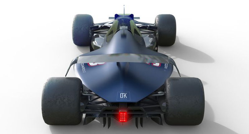 Τo εικονικό μονοθέσιό του είναι ιδιαίτερα δυναμικό και σύγχρονο, χάρη κυρίως στο γυαλί που περιβάλει το κόκπιτ, ανάλογο με αυτό των IndyCars, αντί για το Halo. Παράλληλα ωραίο σχήμα έχουν και οι πλευρικές εισαγωγές που καλύπτουν τα ψυγεία του συστήματος πρόωσης και παραπέμπουν σε σκηνή. Επίσης δεν υπάρχουν πολλά μικρά στοιχεία στο αμάξωμα, για χάρη της αεροδυναμικής. Αναμφίβολα το μέλλον της F1 είναι πάντα ένα επίκαιρο θέμα, ειδικά από τη στιγμή που έτσι και αλλιώς είναι προγραμματισμένες αλλαγές.
