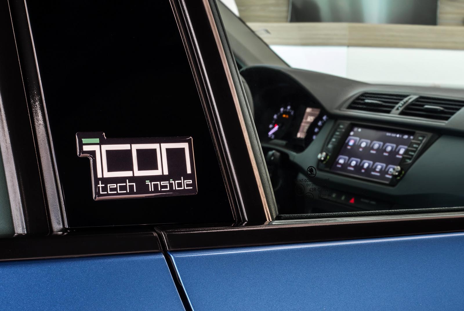 Σε επίπεδο εξοπλισμού, η Fabia i-con, ενδεικτικά, εκτός άλλων διαθέτει προηγμένα ηλεκτρονικά συστήματα για έλεγχο της ευστάθειας, της πέδησης και της δυναμικής λειτουργίας, όλους τους κλασικούς αερόσακους συμπεριλαμβανομένου τύπου κουρτίνας για την προστασία της κεφαλής, με αυτόν του συνοδηγού να προσφέρει δυνατότητα απενεργοποίησης, κεντρικό κλείδωμα με τηλεχειρισμό, ηλεκτρικά ρυθμιζόμενους/θερμαινόμενους εξωτερικούς καθρέπτες στο χρώμα του αμαξώματος, ηλεκτρικά παράθυρα εμπρός, air conditioning κλπ. Εξωτερικά, τον χαρακτήρα της νέας έκδοσης προδίδει ένα καλαίσθητο σήμα, το “i-con tech inside” που κάνει τη Fabia i-con να ξεχωρίζει και στο δρόμο.