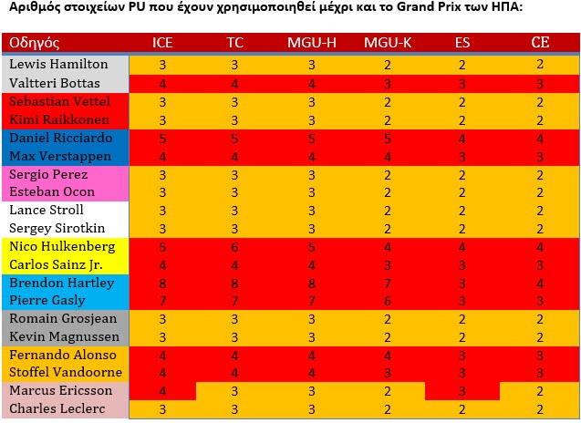Ferrari: Η Ιταλική ομάδα φέρνει εκ νέου το αλλαγμένο πάτωμα που είχε ετοιμάσει από το Ώστιν στο οποίο ξεχωρίζουν οι τρεις σειρές από κάθετα πτερύγια στα πλαϊνά. Ο Vettel θα δοκιμάσει την Παρασκευή το καινούργιο πάτωμα, ενώ ο Raikkonen το παλιό ώστε να καταστεί δυνατή η άμεση σύγκρισή τους στην πίστα. Κατά τα λοιπά, οι διαμορφωτές ροής του ρύγχους και οι αλλαγές στην εμπρός πτέρυγα διατηρούνται. Αξιοσημείωτη είναι επίσης και η δημόσια στήριξη την οποία έχει λάβει ο Sebastian Vettel από τους περισσότερους οδηγούς στο grid αναφορικά με την σκληρή κριτική που δέχεται για τις τελευταίες του εμφανίσεις. Αρκετοί «μαχητές του πληκτρολογίου» ασφαλώς και έχουν διαφορετική άποψη, αλλά εμείς θα προτιμήσουμε τις κρίσεις των Hamilton, Raikkonen, Gasly ή Sainz σχετικά με το θέμα.