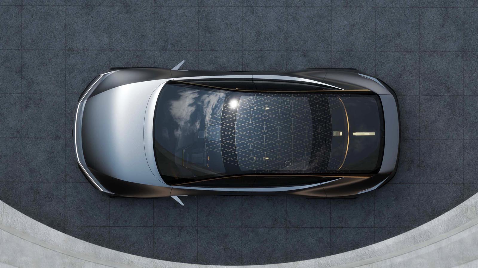 Η σχεδίαση της οροφής είναι εμπνευσμένη από το σχήμα του φεγγαριού, με τις χρυσού χρώματος ράγες οροφής από ανοδιωμένο αλουμίνιο, να υποδηλώνουν το “δαχτυλίδι” του σεληνόφωτος που δημιουργείται από μια έκλειψη. Οι μοναδικές αναλογίες του οχήματος, που καθορίζονται από το μακρύ μεταξόνιο και την περιφέρειά του, τις καμπύλες της καμπίνας έμπροσθεν των κολώνων Α και από τη γωνία κλίσης του πίσω παραθύρου, δίνουν στο όχημα μια καθαρή, απλή σιλουέτα.