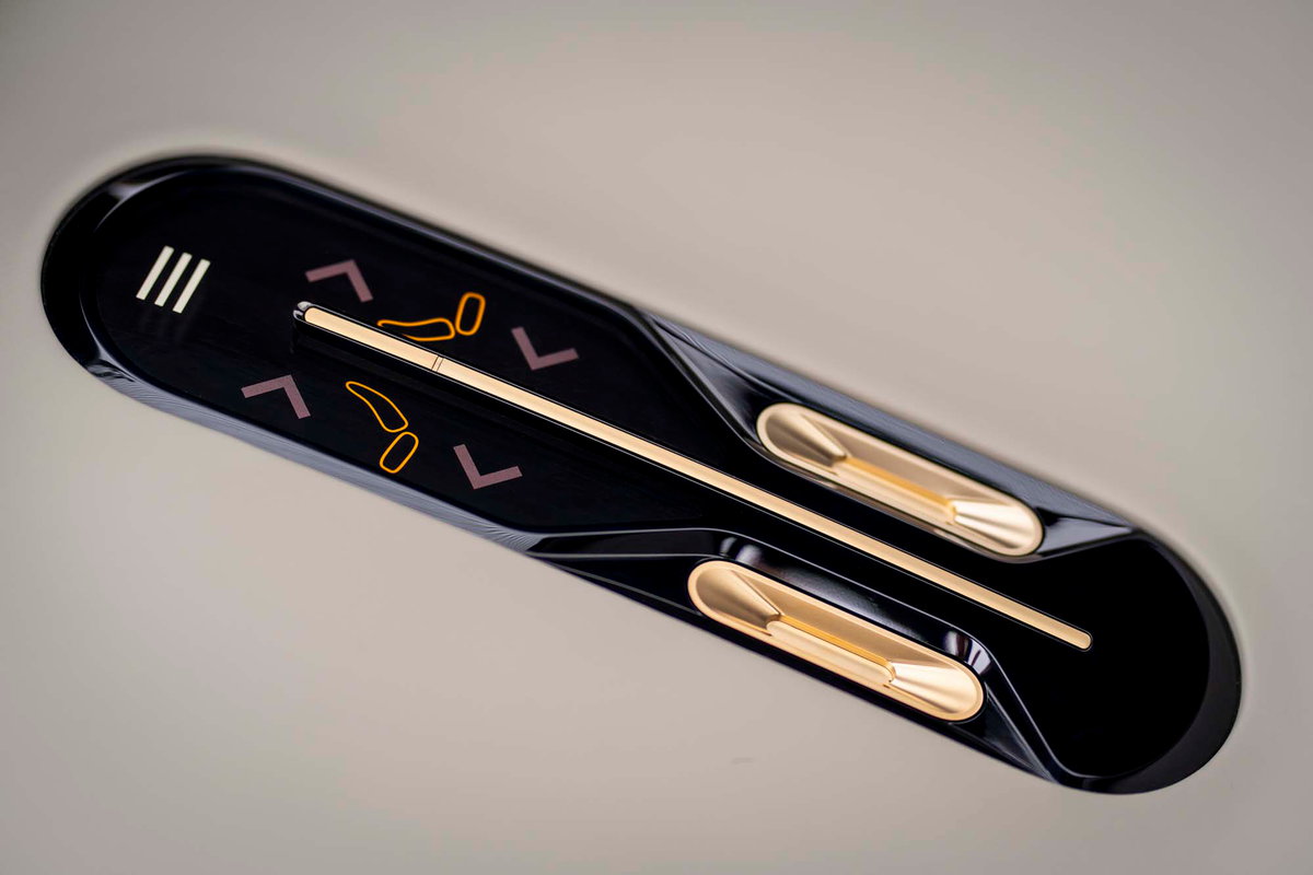 Το συγκεκριμένο μοτίβο, αποτυπώνεται και στην λεπτή λωρίδα φωτισμού, σε σχήμα πτερυγίου, που εκτείνεται στην πίσω πόρτα, προσθέτοντας μια καθαρή σχεδιαστική γραμμή στην πίσω πλευρά του αυτοκινήτου. Τοποθετημένοι εντός θόλων επενδυμένων με αντίθετου χρωματισμού (σε σχέση με το αμάξωμα) μαύρο προστατευτικό υλικό, φιλοξενούνται οι τροχοί 22 ιντσών που έχουν παρόμοιο αεροδυναμικό σχεδιασμό με το υπόλοιπο αμάξωμα, για την εκτροπή του αέρα κατά μήκος των πλευρών του αυτοκινήτου.