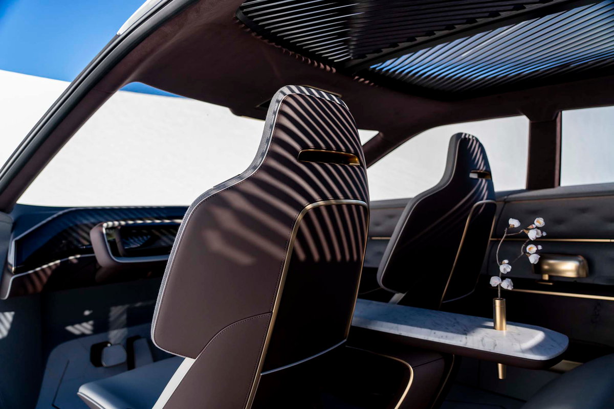 Tο Ιαπωνικό DNA χαρακτηρίζει και το χειροποίητο εσωτερικό του QX Inspiration, που είναι φτιαγμένο με παραδοσιακές τεχνικές και με επιλογή υλικών εμπνευσμένων από την Ιαπωνική αισθητική. Η ανάπτυξη νέων πλατφορμών ηλεκτροκίνητων οχημάτων, επιτρέπει τη δημιουργία ευρύχωρων εσωτερικών χώρων, με επηρεασμό από την omotenashi, την Ιαπωνική προσέγγιση της φιλοξενίας. Η καμπίνα ενσωματώνει τεχνολογίες που διαμορφώνουν ένα φιλόξενο περιβάλλον, υποστηρίζοντας τον οδηγό και συνδέοντας τους επιβαίνοντες με τον υπόλοιπο κόσμο.