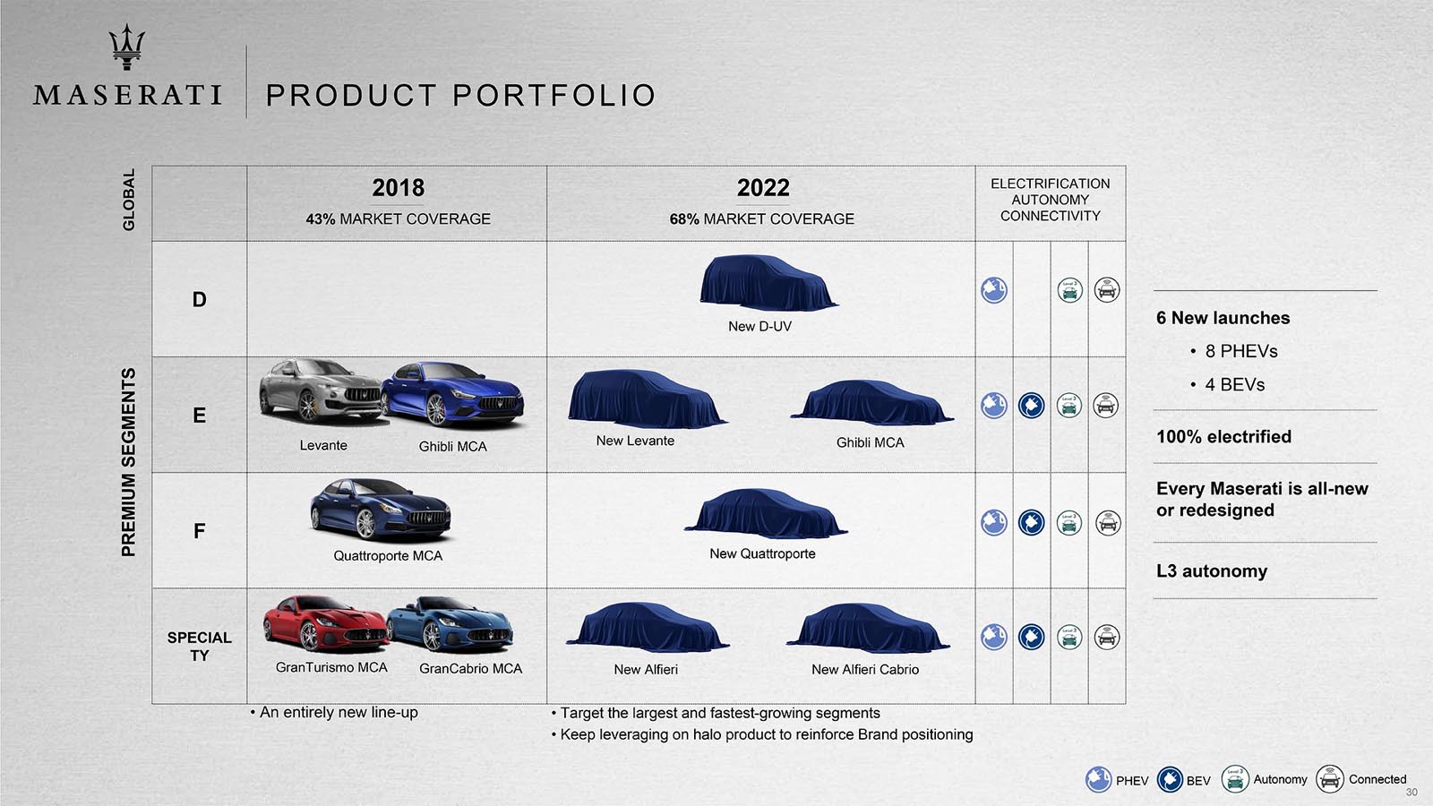 Για αυτό και θα ανακαινισθεί το ιστορικό εργοστάσιο στην Modena (λειτουργεί από το 1936) ώστε να παραχθούν μεταξύ άλλων η νέα Quattroporte, η Ghibli, η Levante και ένα νέο μεγάλο SUV έως το 2022. Την Alfieri παραγωγής θα την δούμε σε περίπου ένα χρόνο από σήμερα να κάνει πρεμιέρα στο σαλόνι της Γενεύης και να αντικαθιστά τις Granturismo και Grancabrio.
