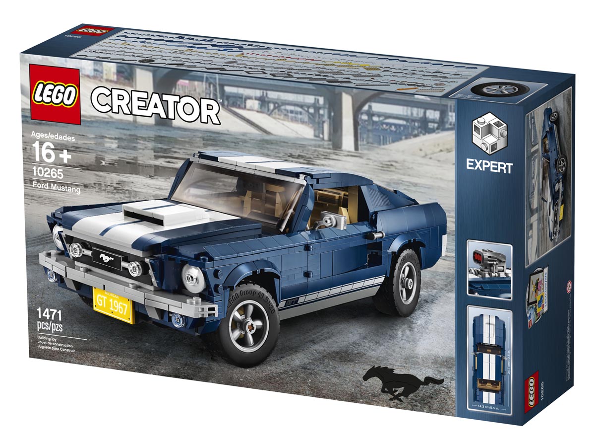 Αποτελώντας προϊόν συνεργασίας ανάμεσα στη Ford και το LEGO® Group, το νέο κιτ της συλλογής LEGO Creator Expert είναι ένα συναρμολογούμενο μοντέλο της θρυλικής Ford Mustang του 1967 σε έκδοση Fastback. Το κιτ αποτελείται από 1.470 εξαρτήματα και διαθέτει λειτουργικό τιμόνι, σκούρο μπλε αμάξωμα με τις περίφημες αγωνιστικές λευκές ρίγες, εισαγωγή αέρα στο καπό, τυπωμένο σήμα Mustang στη μπροστινή γρίλια, σήματα GT και ζάντες πέντε ακτίνων με μαλακά ελαστικά.