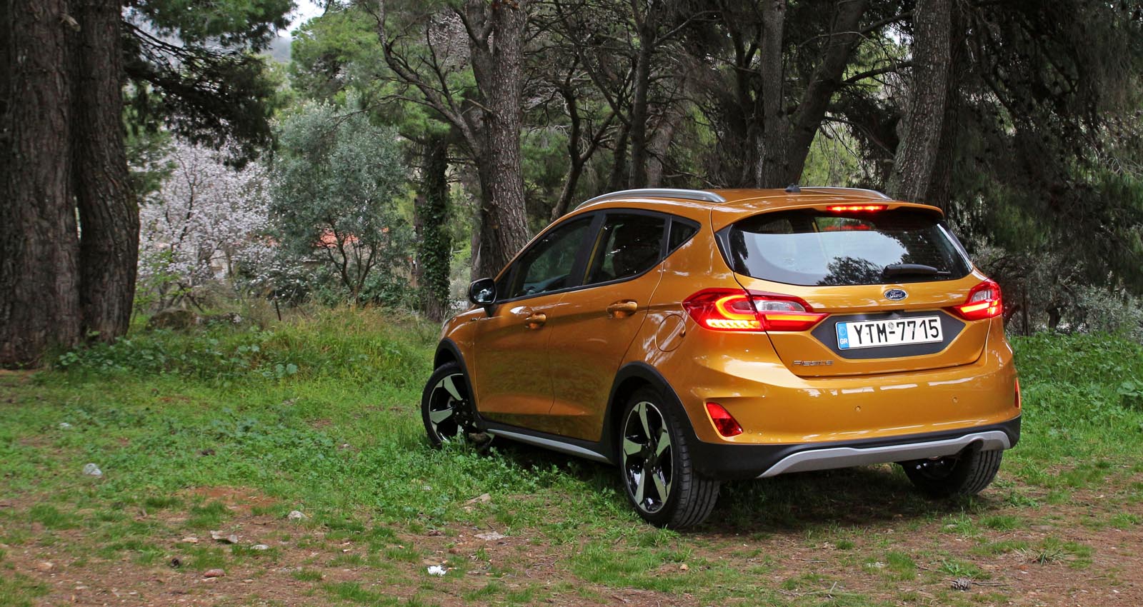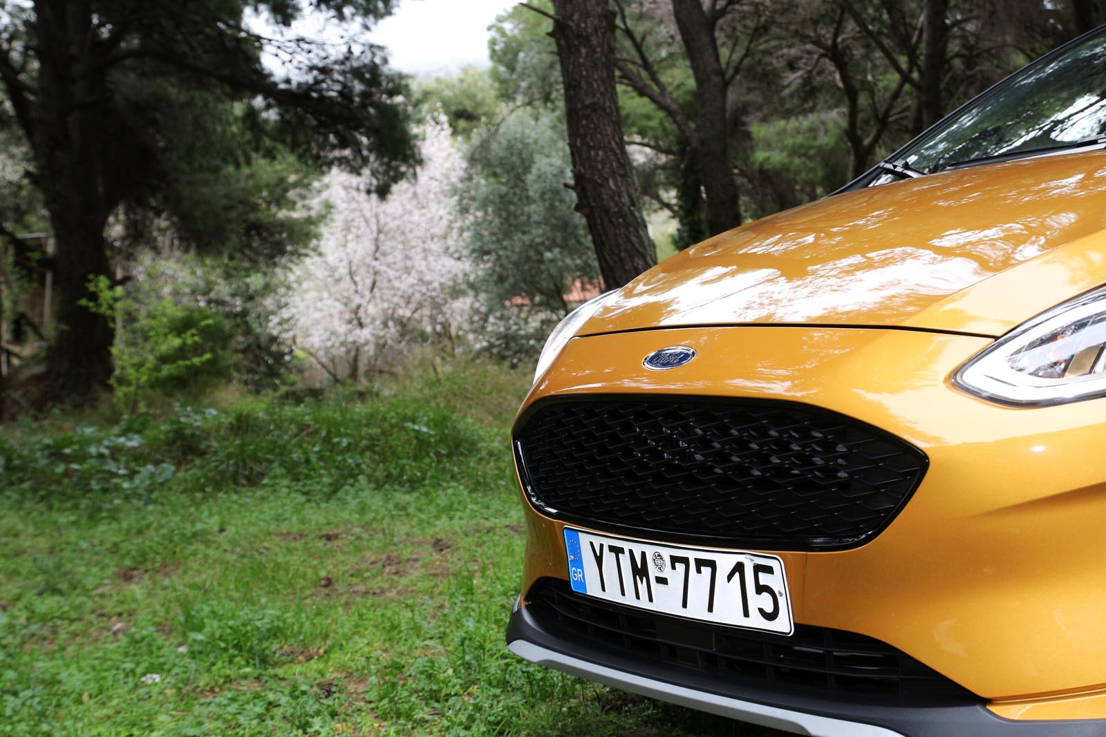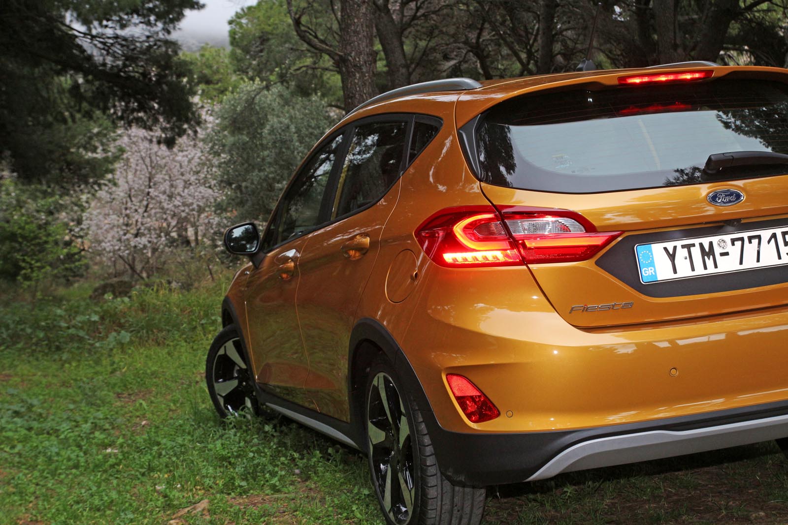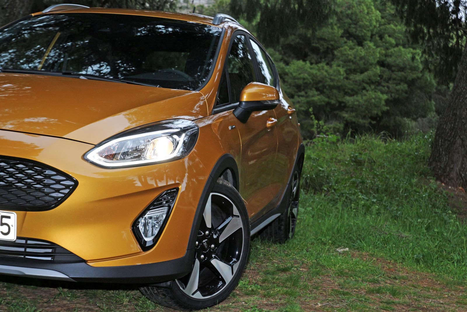 Εστιάζοντας στις διαφορές, σε σχέση με τα απλά Fiesta, η πρώτη, που γίνεται άμεσα αισθητή είναι αυτή της εξωτερικής εμφάνισης. Μία σειρά πλαστικές ενισχύσεις σε θόλους και προφυλακτήρες, δίνουν έναν αέρα πιο περιπετειώδη. Οι ράγες της οροφής, με τη σειρά τους, αποτελούν ένα ακόμα χαρακτηριστικό γνώρισμα των crossover. Όσο για τους πιο παρατηρητικούς, θα αντιληφθούν μία ελαφρά διαφορά στο ύψος, καθώς το πάτωμα του Fiesta Active είναι κατά 1,8 εκατοστά ψηλότερο, ώστε να μπορεί να κινείται και σε ελαφρά πιο δύσβατα εδάφη.