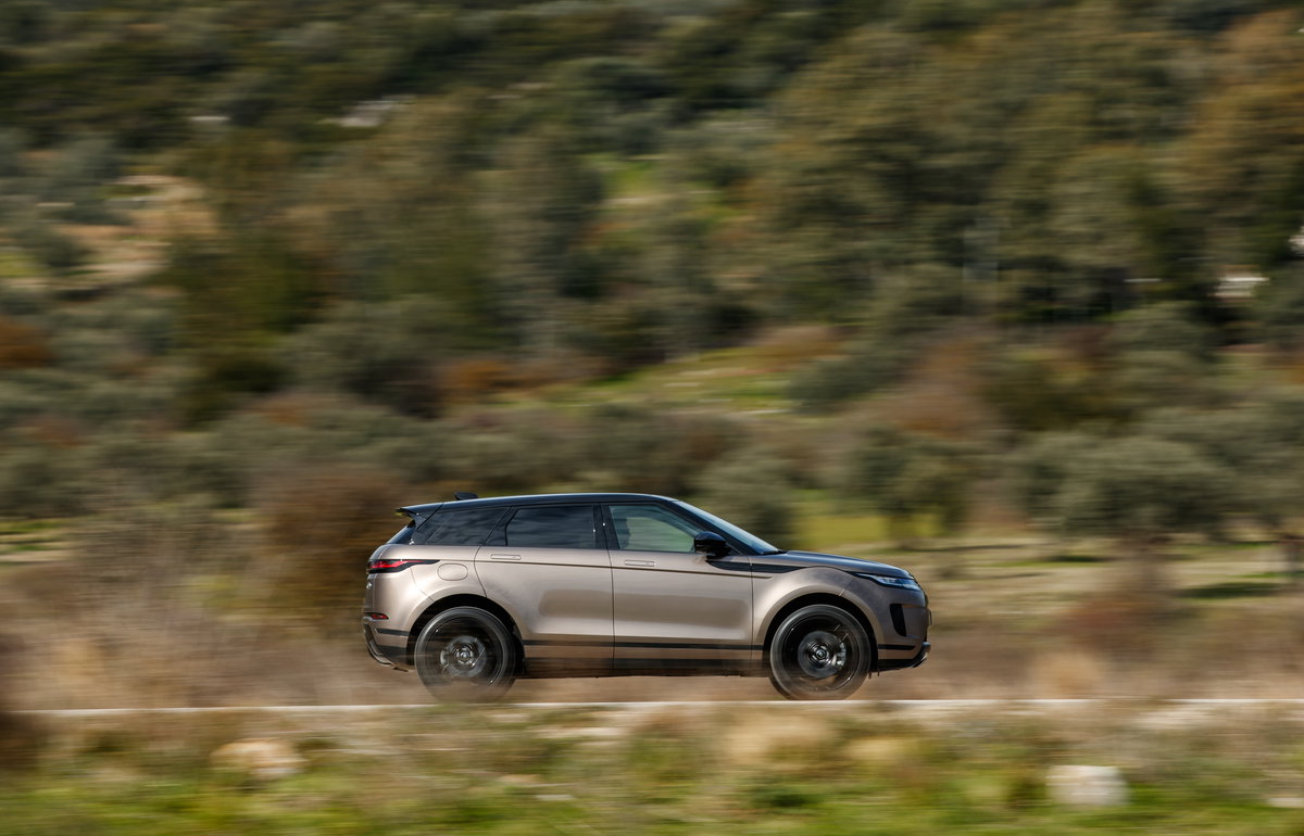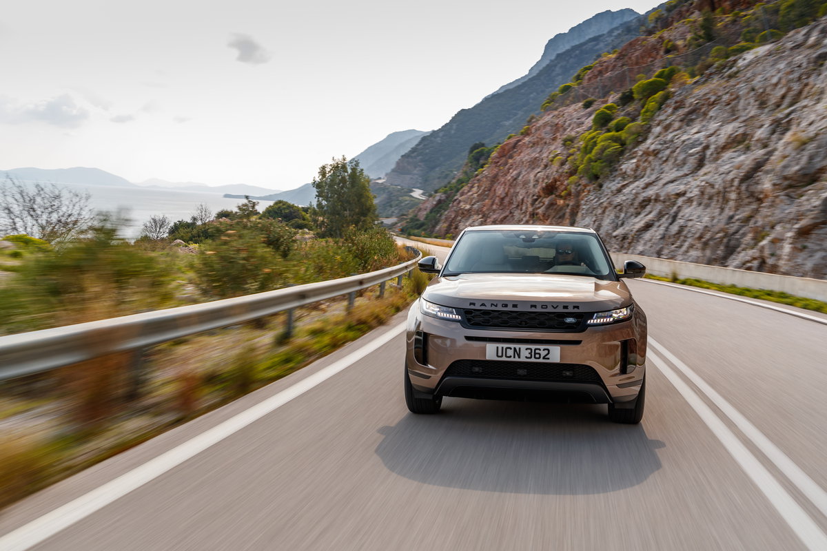 Τα Evoque που οδηγήσαμε ήταν τα P250 και D240, με τα σύνολα βενζίνης και πετρελαίου των 2.000 κυβικών της γενιάς Ingenium που αποδίδουν 249 και 240 ίππους αντίστοιχα (365 και 500 Nm ροπής) και υποστηρίζονται από ένα ήπιο υβριδικό σύστημα (MHEV) σε συνδυασμό με ηλεκτρικό κύκλωμα 48V. Ο τελευταίο υποβοηθά τους δύο τετρακύλινδρους τόσο στην εκκίνηση όσο και όταν πατηθεί βαθιά το γκάζι, ενώ η μικρή υστέρηση που εμφανίζεται στην απόκριση γίνεται αντιληπτή αλλά τη συνηθίζεις.